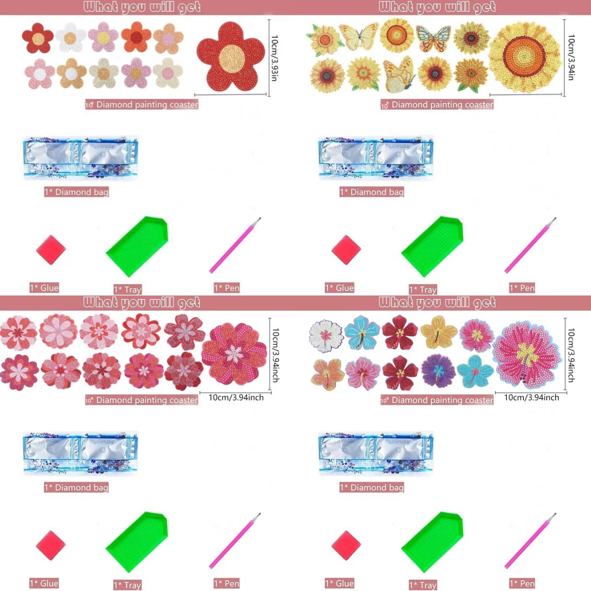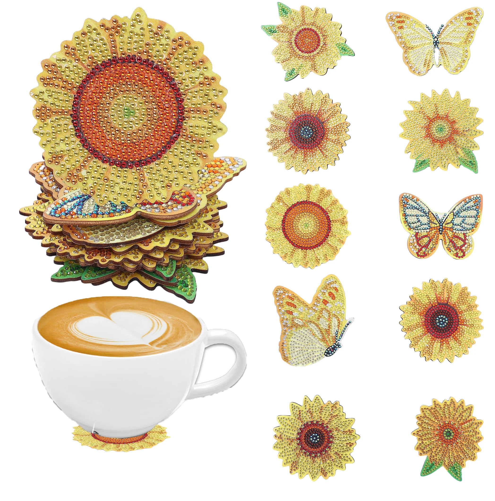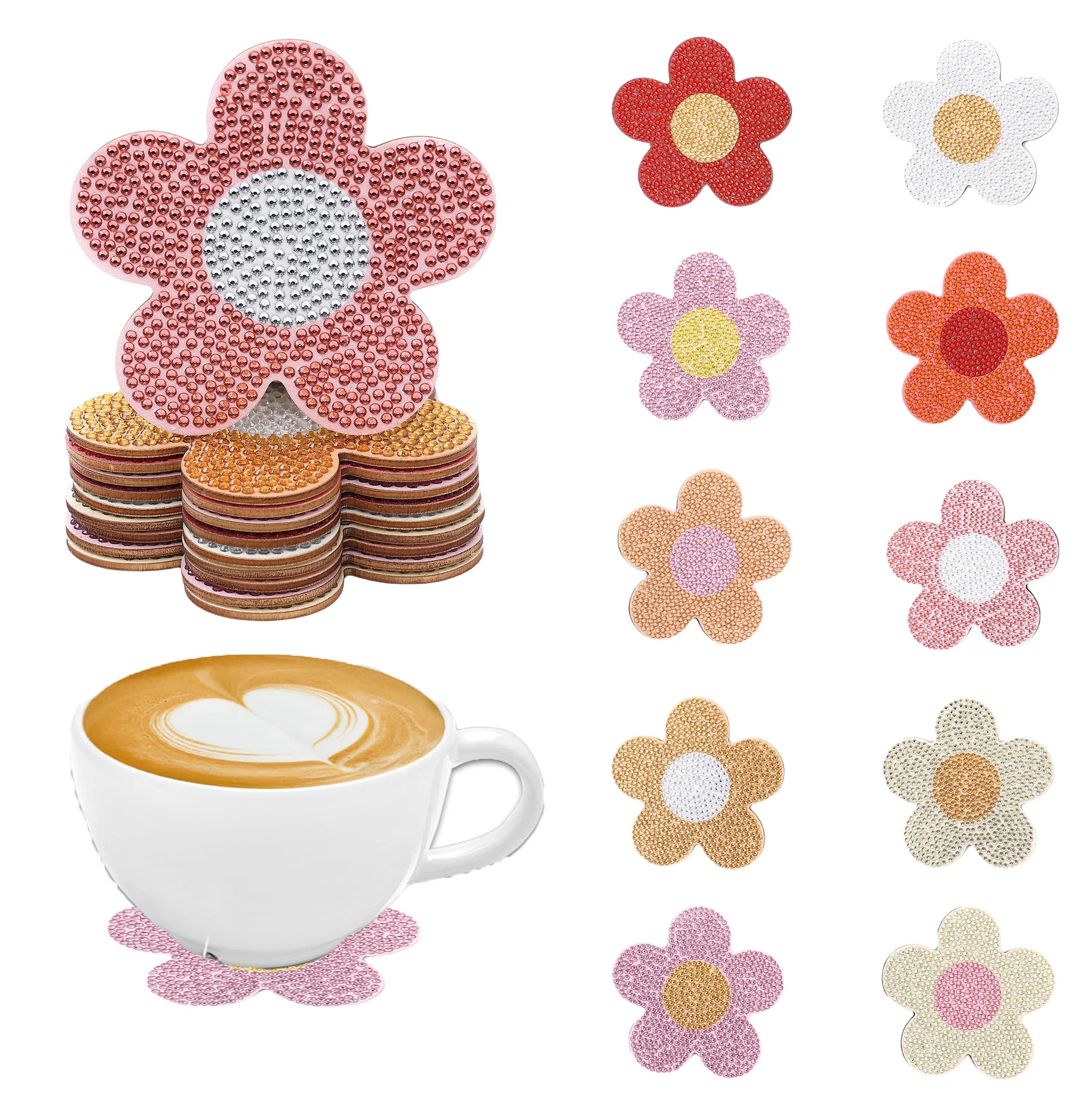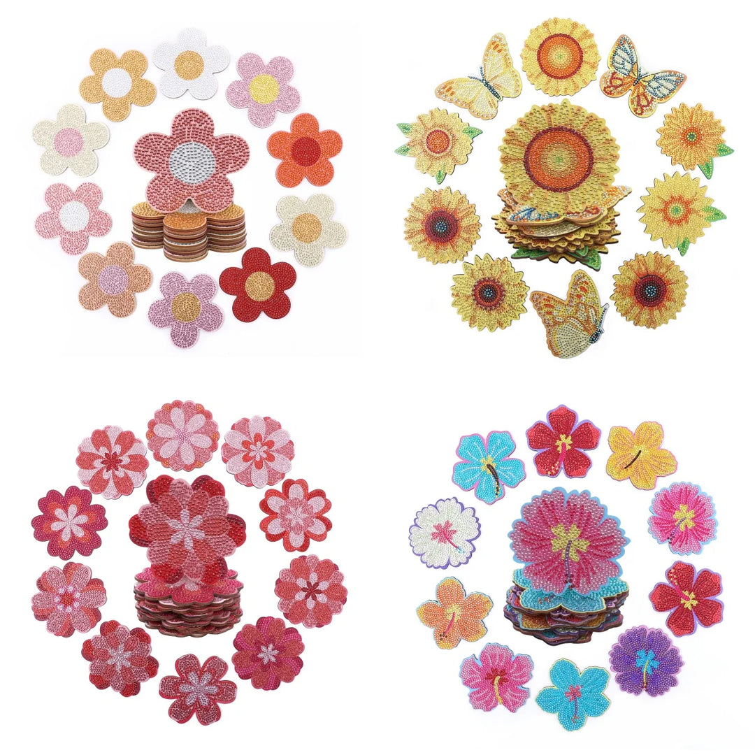 10 DIY diamond-painted coasters with floral patterns, no cup holder, anti-slip wooden coasters for party decoration