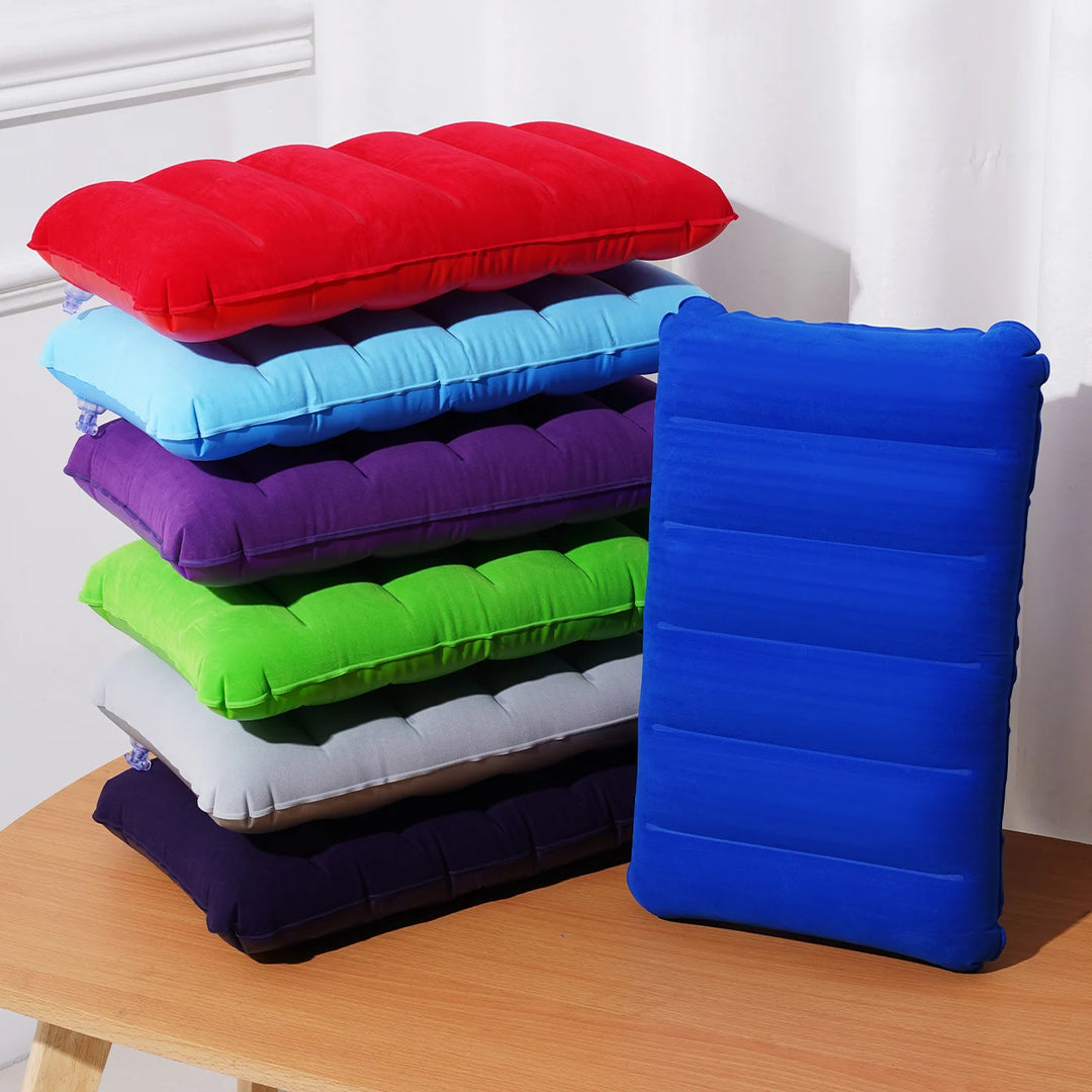 1PC Inflatable Pillow Small Squared Flocked Fabric Air Pillow Beach Pillow for Hiking,Camping,Traveling,Napping,Desk Rest