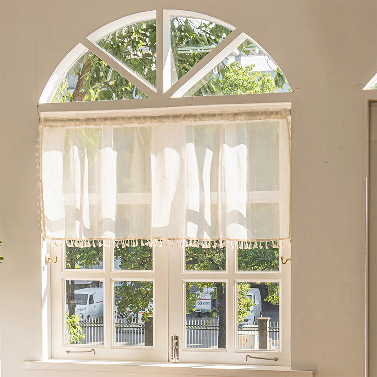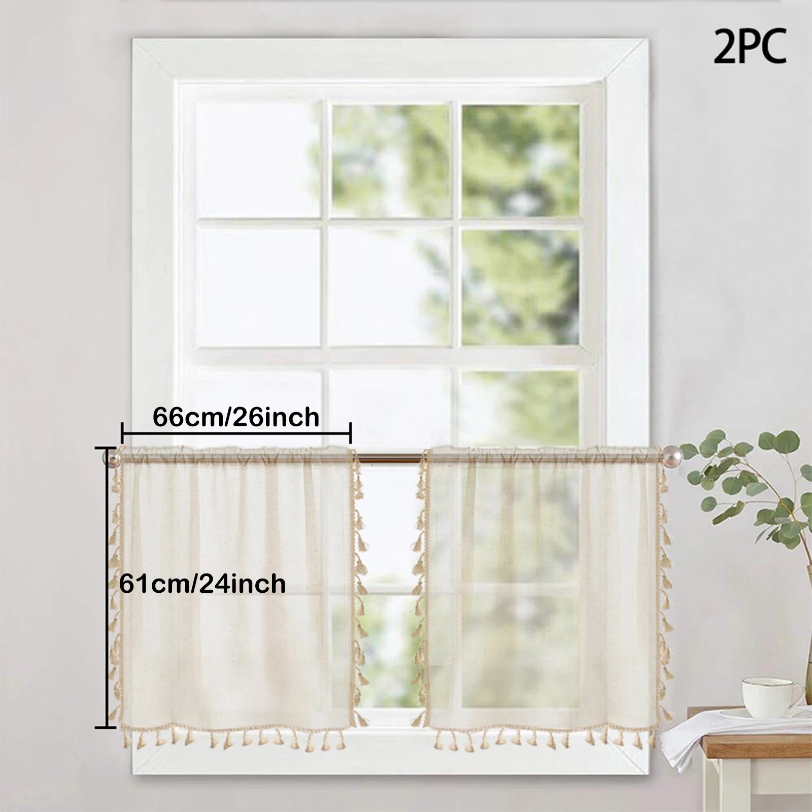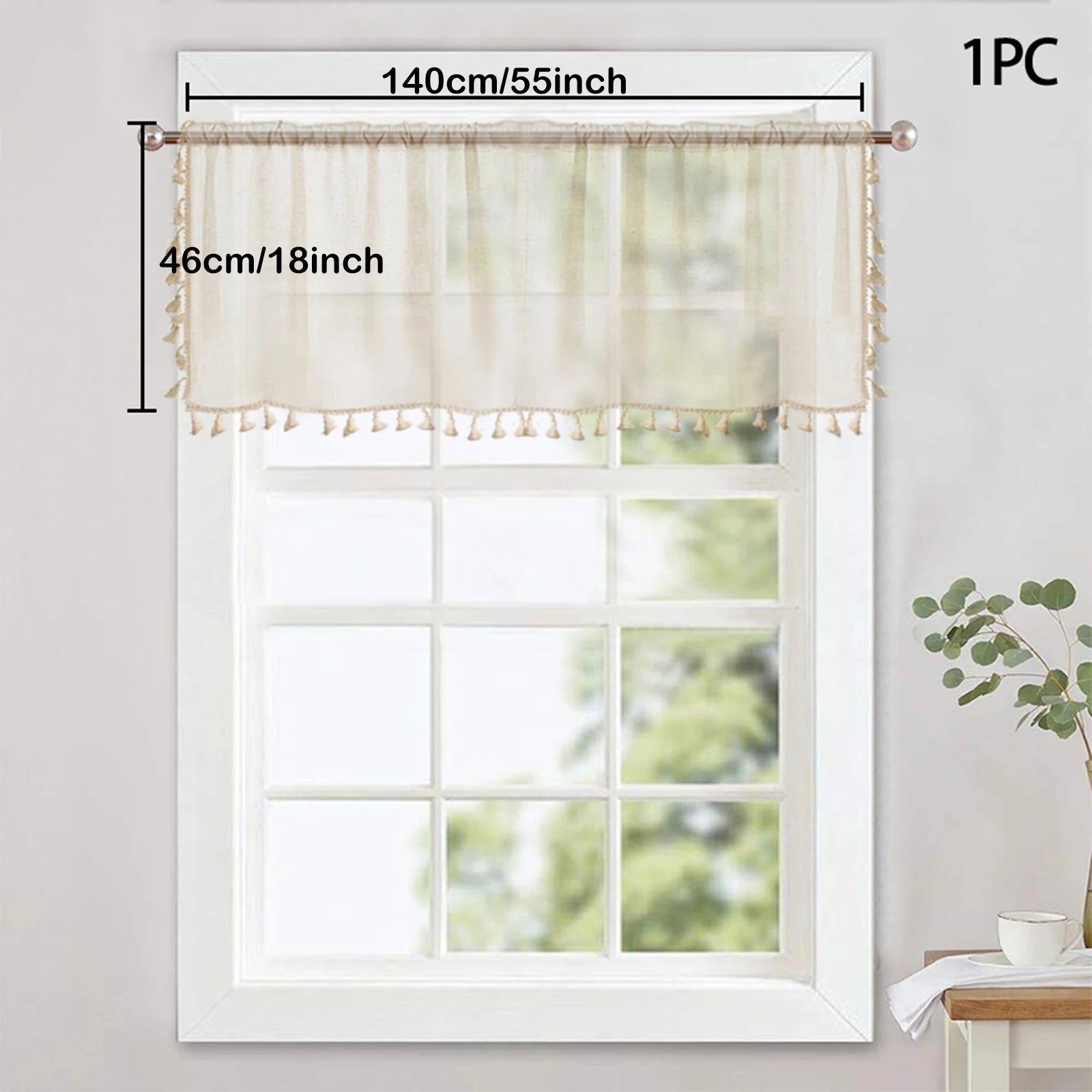 1/2 Panels Boho Kitchen Curtains Sheer Tier Curtains Tassels Linen Short Valance Rod Pocket for Small Window Bathroom Bohemian