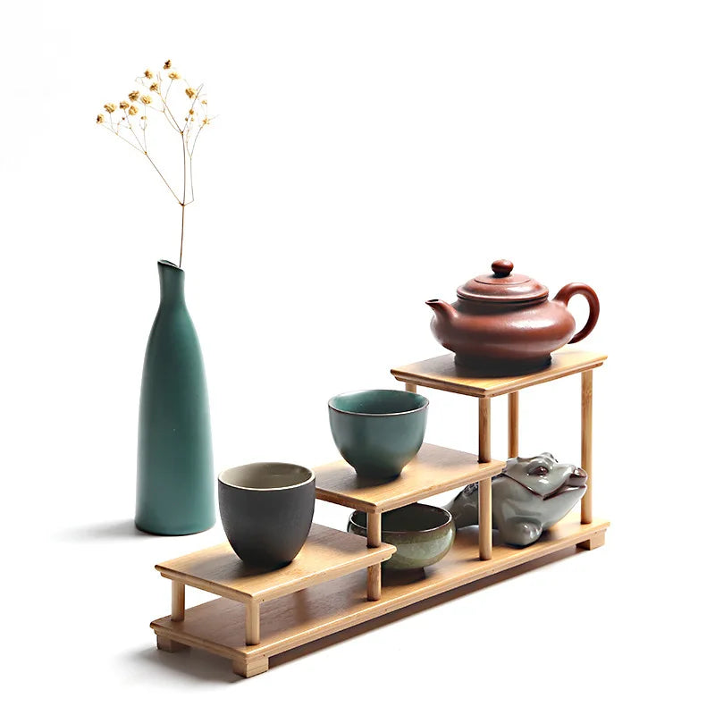Bamboo and Wood Decorative Shelf Used for Statues Vases Tea Sets Props Display Stands Handmade Antique Storage Shelf Room Decor