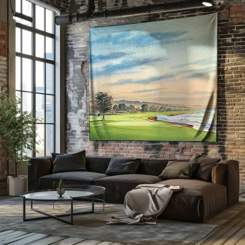 Coastal Golf Landscape Tapestry Ocean View Nature Wall Hanging Beach Home Decor Scenic Room Divider Artistic Wall Art