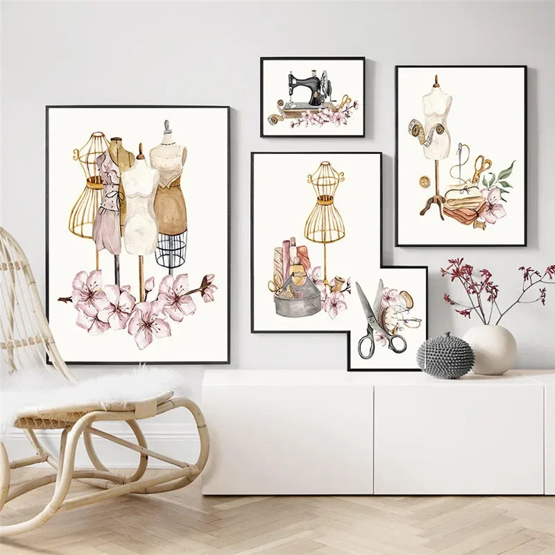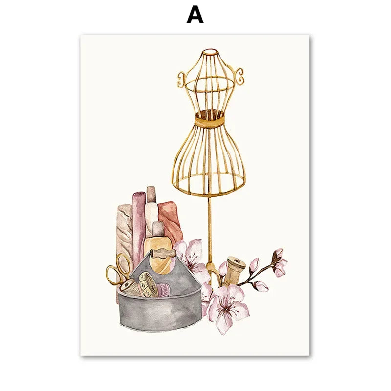 Bohemian, Wall Art, Women's Clothing, Sewing Machines, HD Canvas Print Posters for Home Living Room Bedroom Decoration