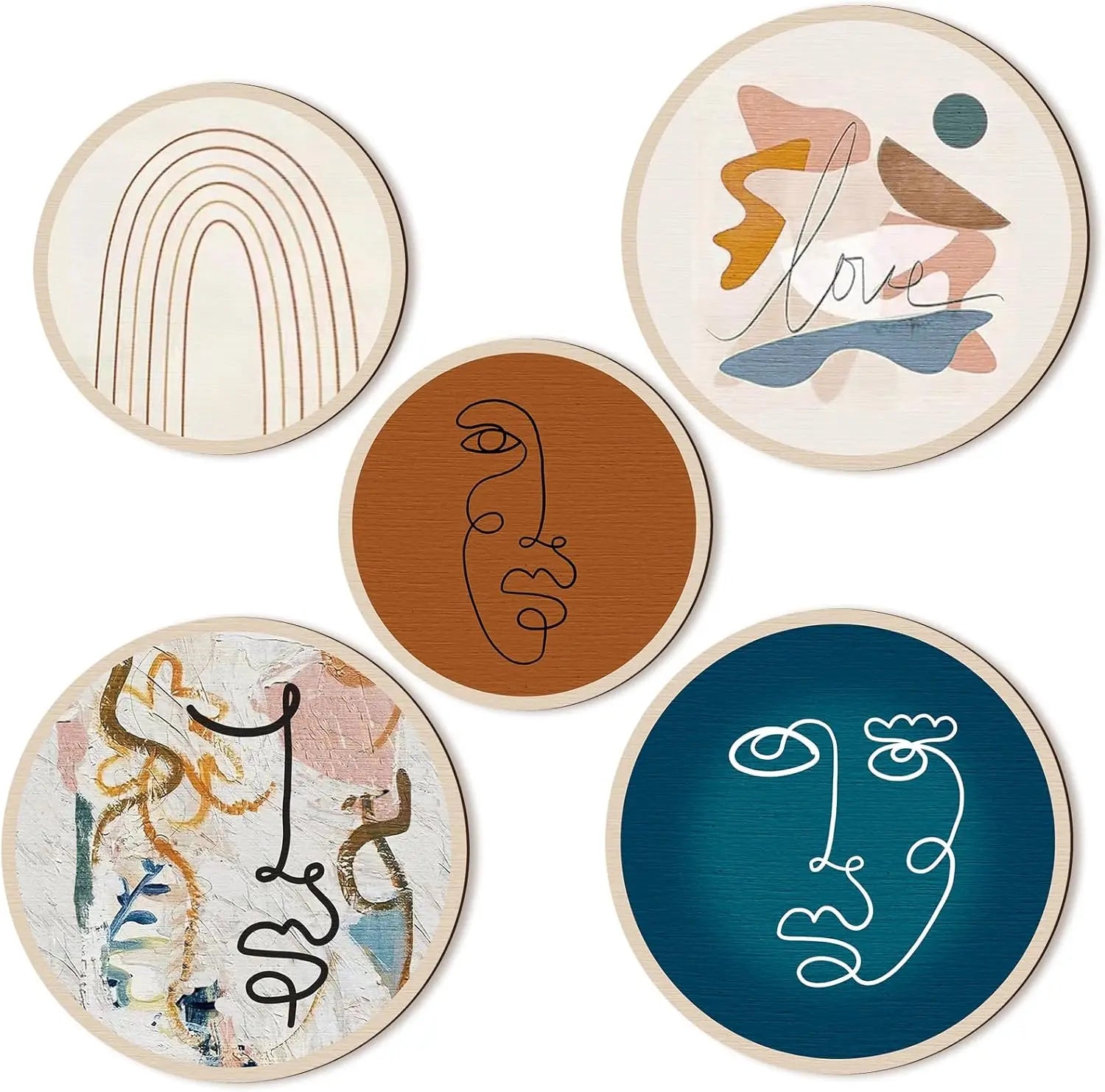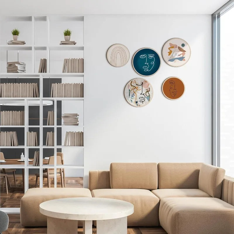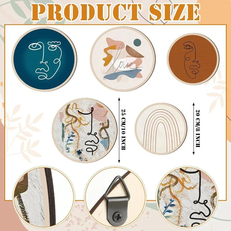 Bohemian Wood Wall Art Collection - Set of 5 Handcrafted Geometric Decor Pieces for Farmhouse Living Rooms & Cozy Bedroom Spaces