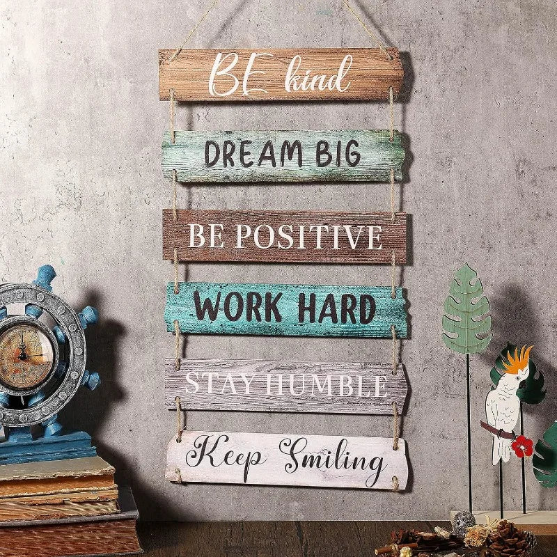 Farmhouse Wall Art Set of 6 - Retro Rustic Wooden Plaques with Motivational Quotes for Office, Bedroom, Living Room Decor