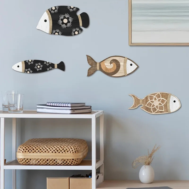 Coastal Farmhouse Wood Fish Plaque - Large Nautical Wall Art Decor with Rustic Finish for Living Rooms, Bathrooms & Porches