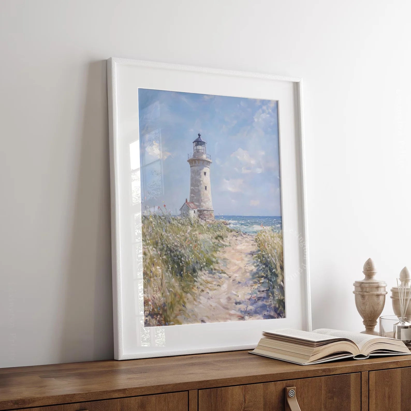 Coastal Lighthouse Print, Summer PRINTABLE Wall Art, Beach Wall Art Coastal Print, Nautical Home Decor Beach Painting Bathroom D