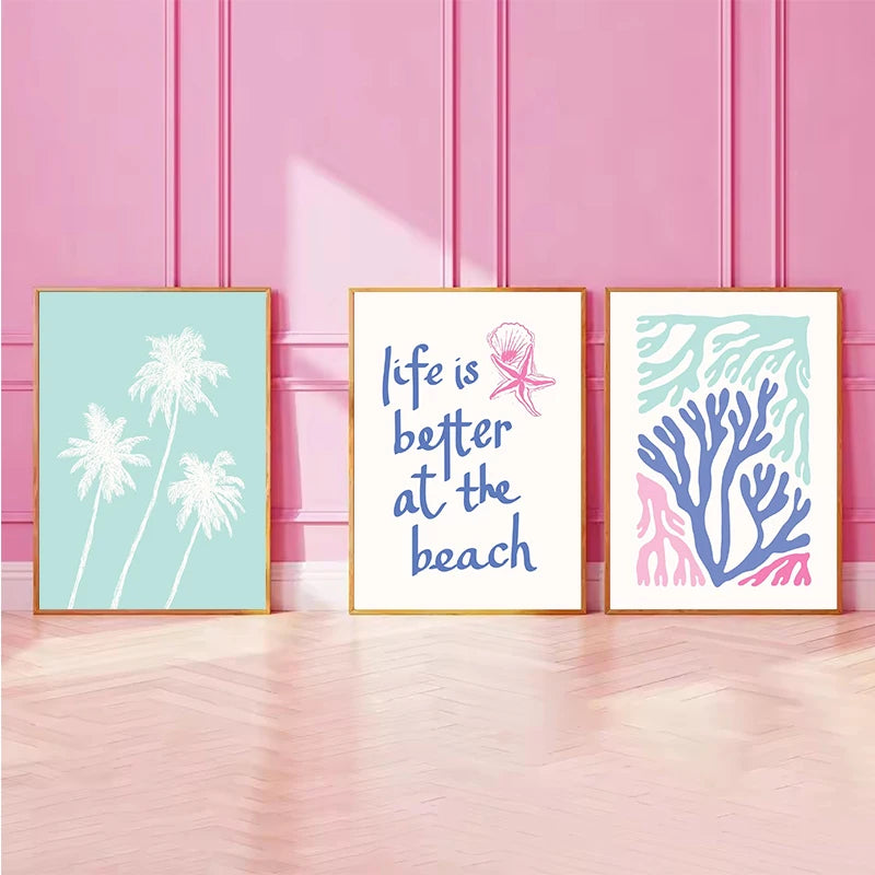 Coastal Gallery Wall Art Poster Summer Art Prints Posters Girly Wall Art Trendy Beach House Decor Bedroom Living Room Decor