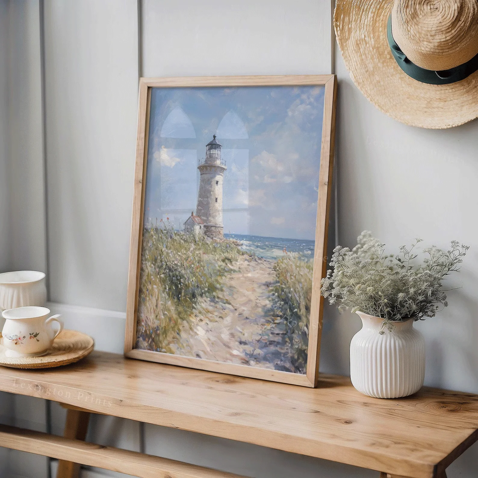 Coastal Lighthouse Print, Summer PRINTABLE Wall Art, Beach Wall Art Coastal Print, Nautical Home Decor Beach Painting Bathroom D