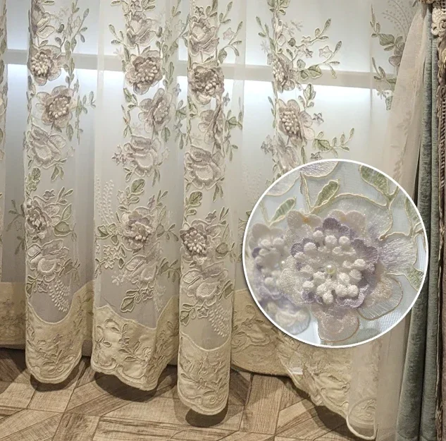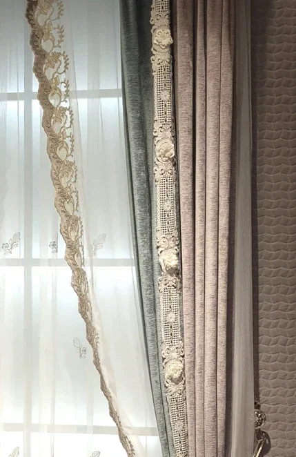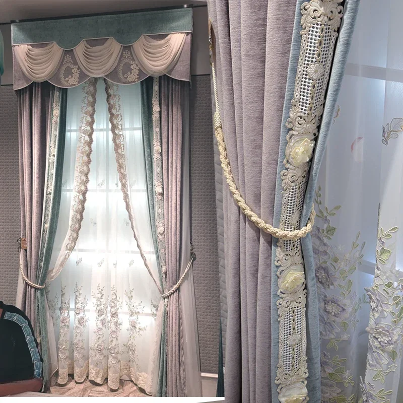 Curtains For Living Dining Room Bedroom French Purple Gauze Curtains Chenille European Style Bay Window Screens