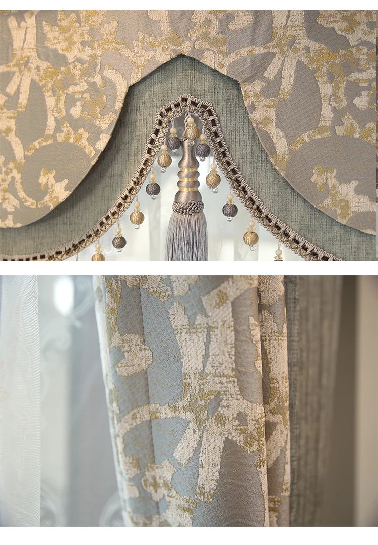 Custom Curtains for Living Room Simplicity Lace Splicing Green Chenille Blackout Embroidery Valance Tulle High Quality Fabric