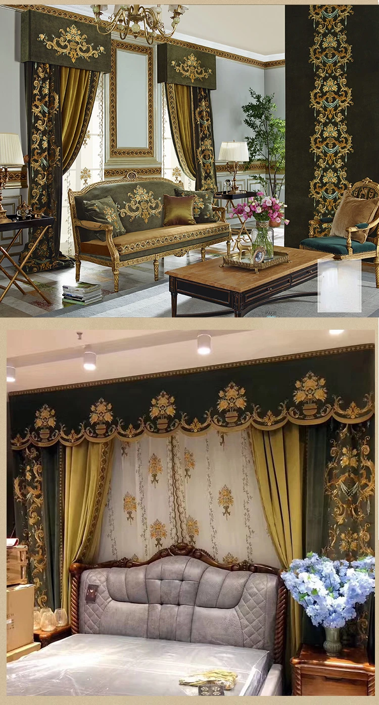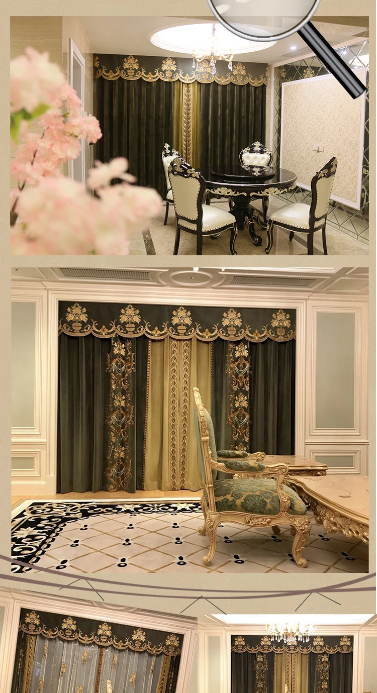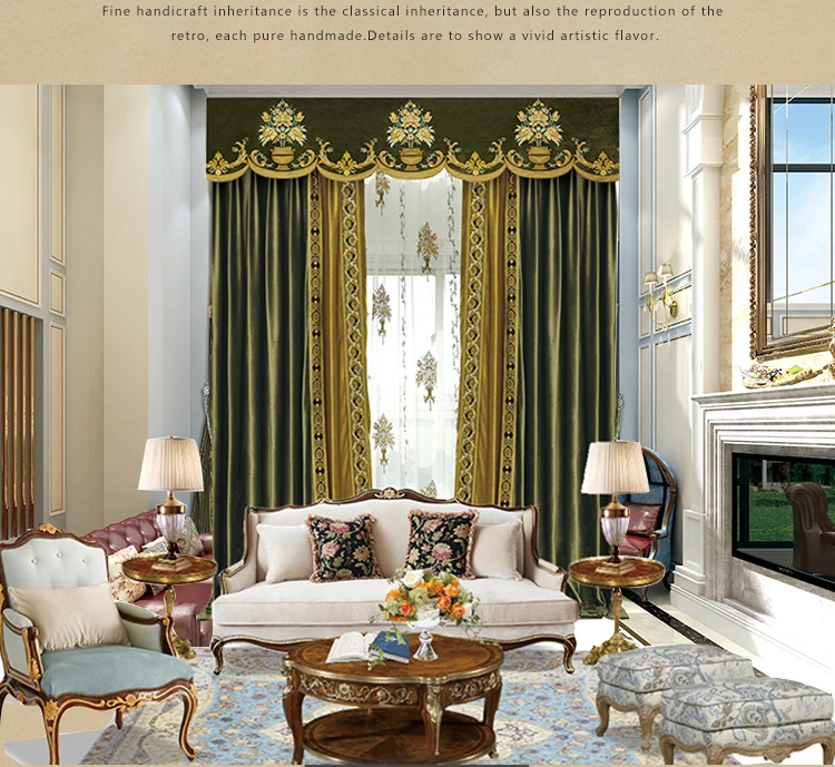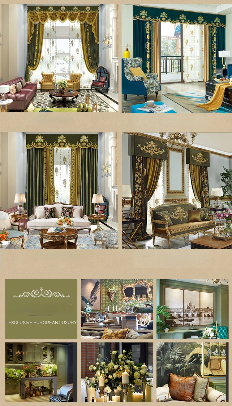 European Luxury Curtains for Living Room Blackout Bedroom Tulle Valance Velvet Embroidereddrapery Custom Elegant Green Short