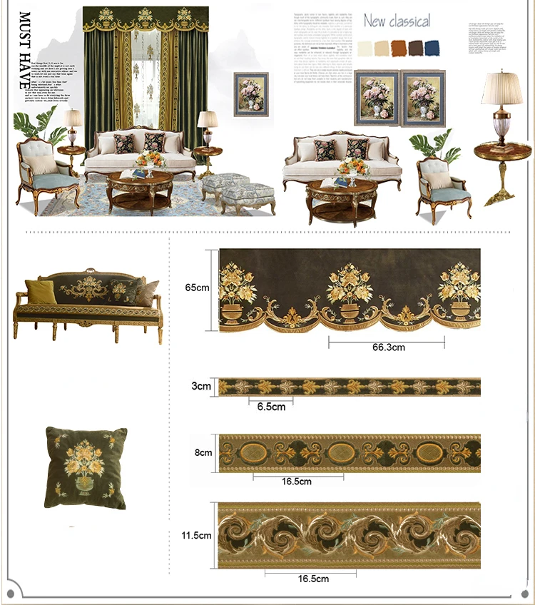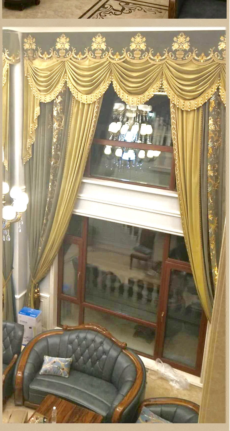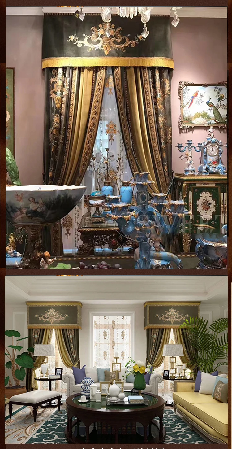 European Luxury Curtains for Living Room Blackout Bedroom Tulle Valance Velvet Embroidereddrapery Custom Elegant Green Short