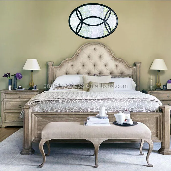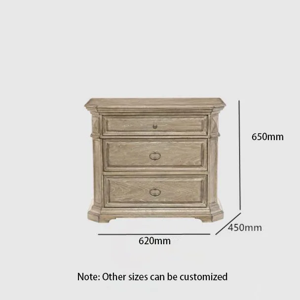 Bedroom Furniture French Vintage Solid Wood Oak Antiqued Grey Bedside Table Nightstand