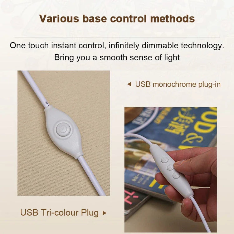 Bohemian LED Desk Lamp USB Button Warm Dimming Stained Glass National Style For Home Bar Bedroom Decor Creative LED Table Lamp