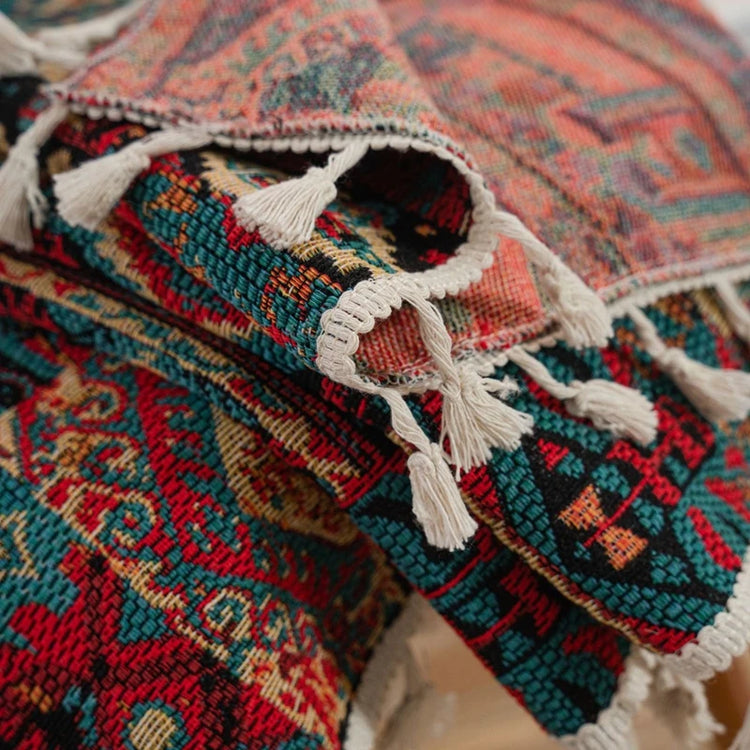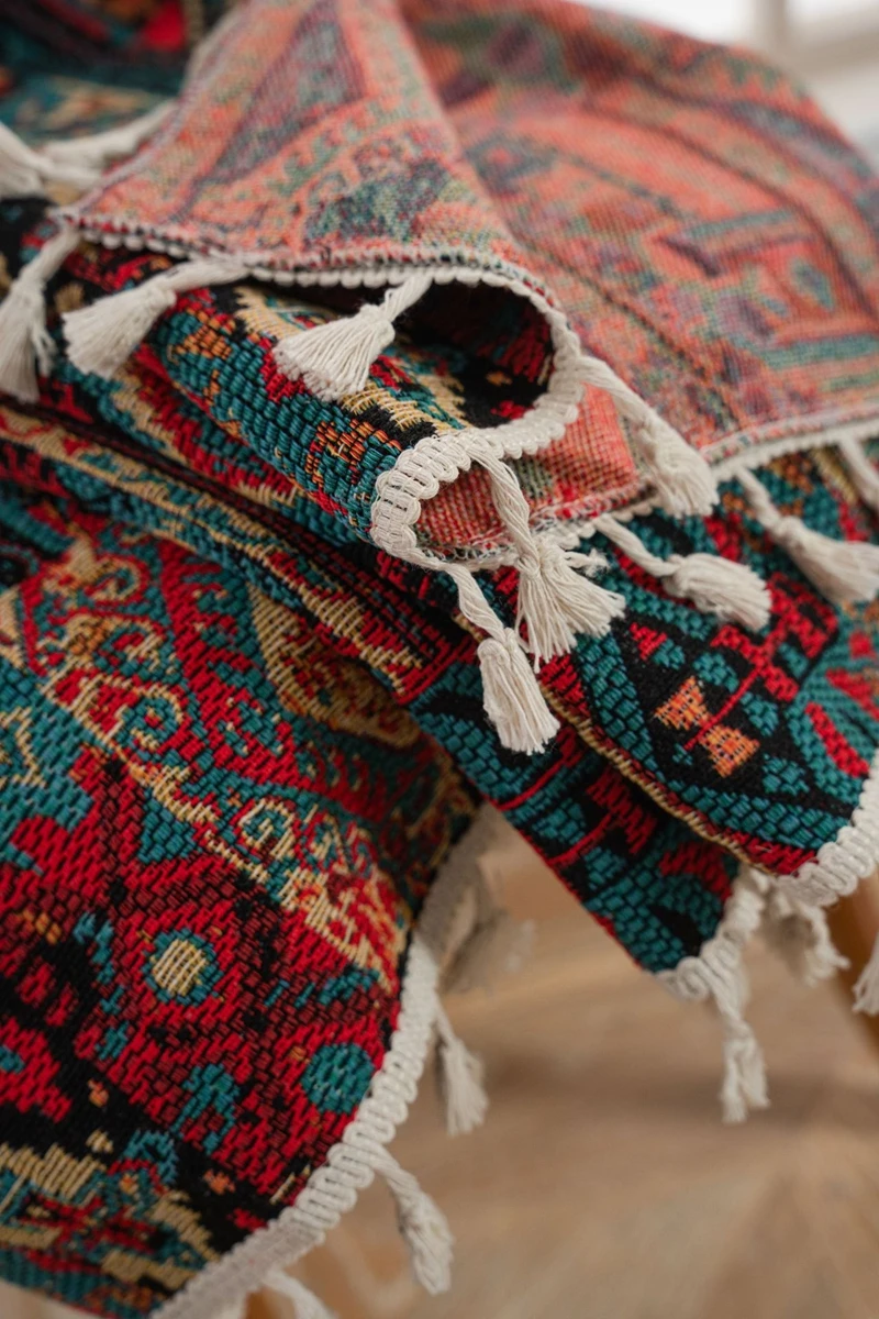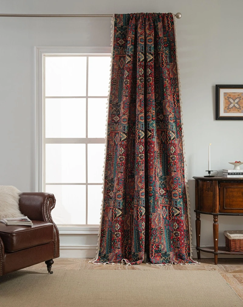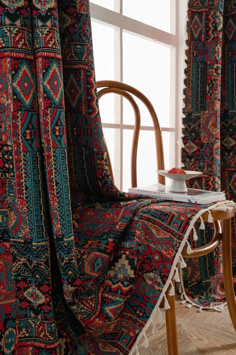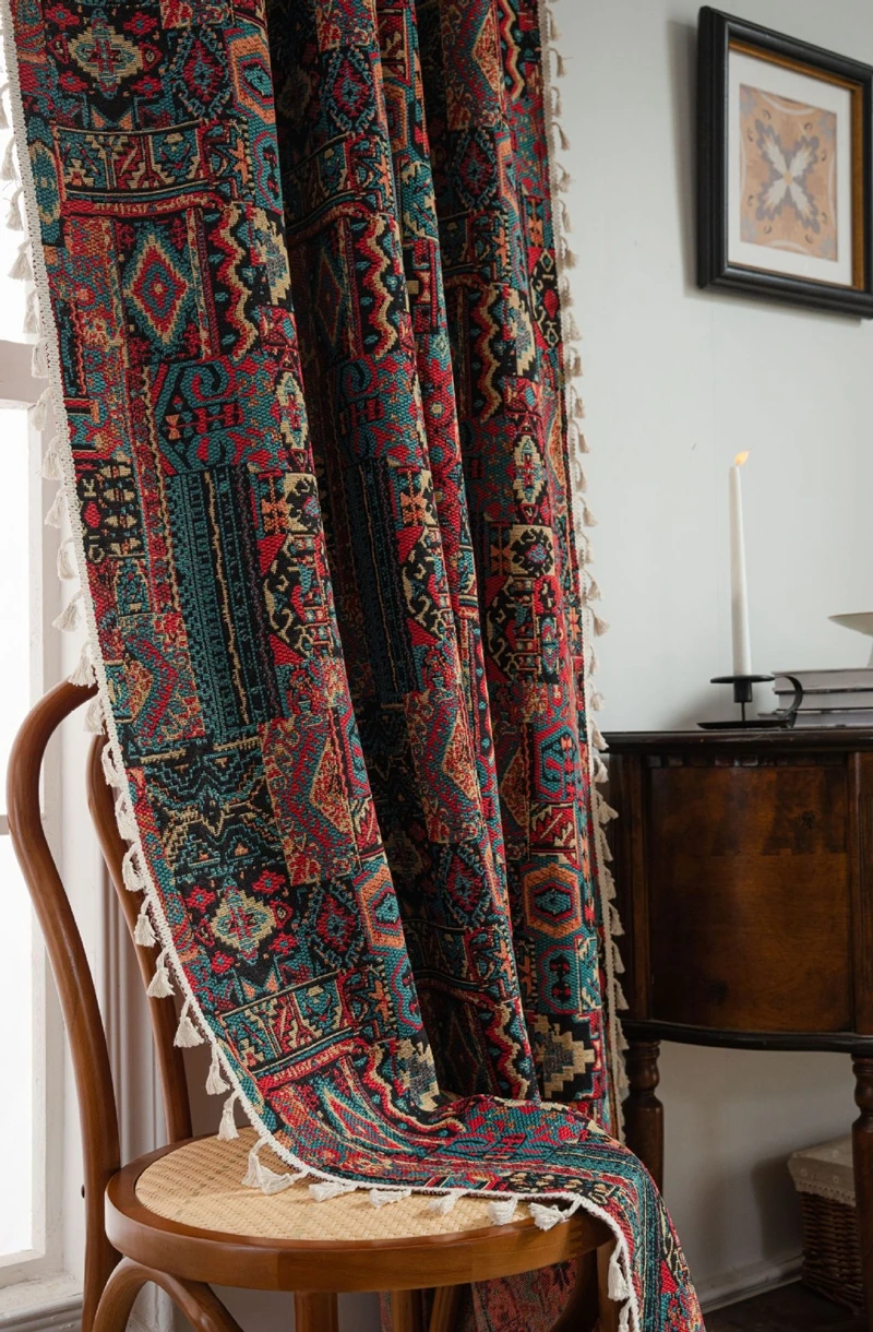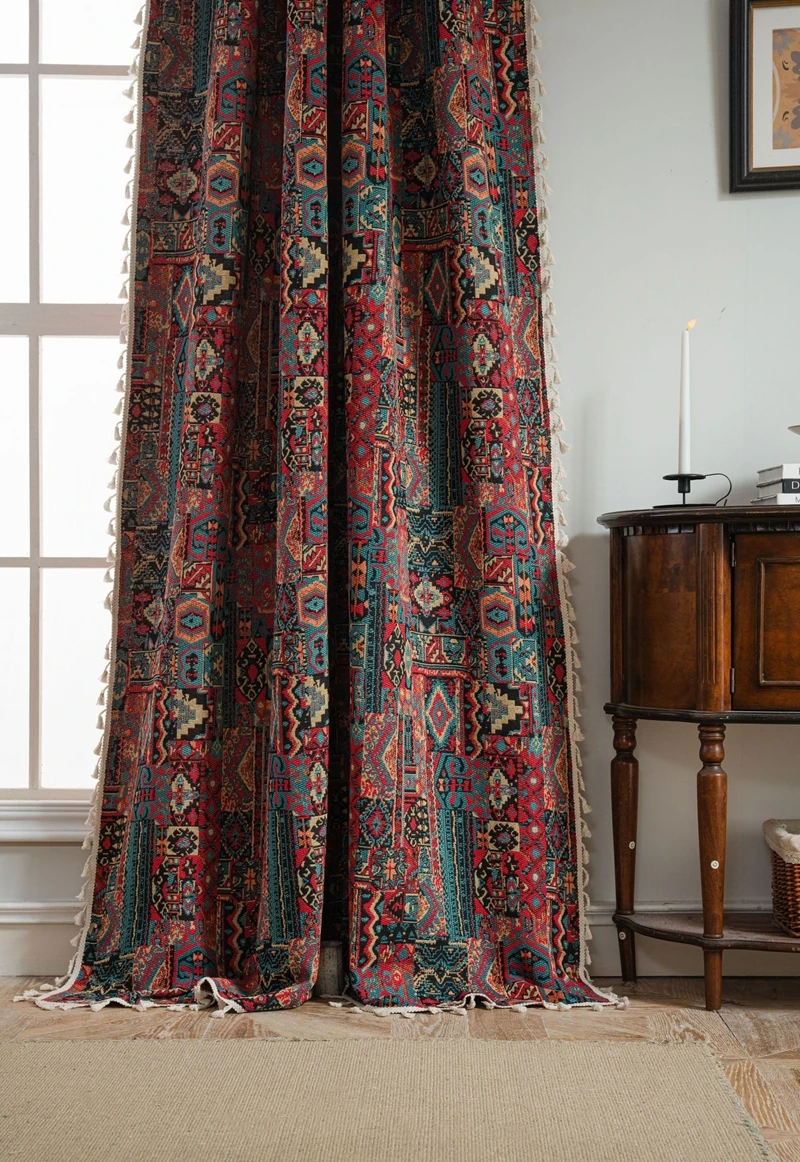 Bohemian Style Curtains Jacquard Geometric Tassel Curtain Finished Kitchen Valance Bedroom Living Room Semi-blackout Drapes
