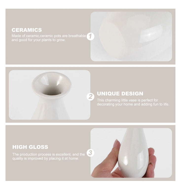 Ceramic Vase Small Flower Table Vases Mini Porcelain Decorative Modern White Cute for Flowers