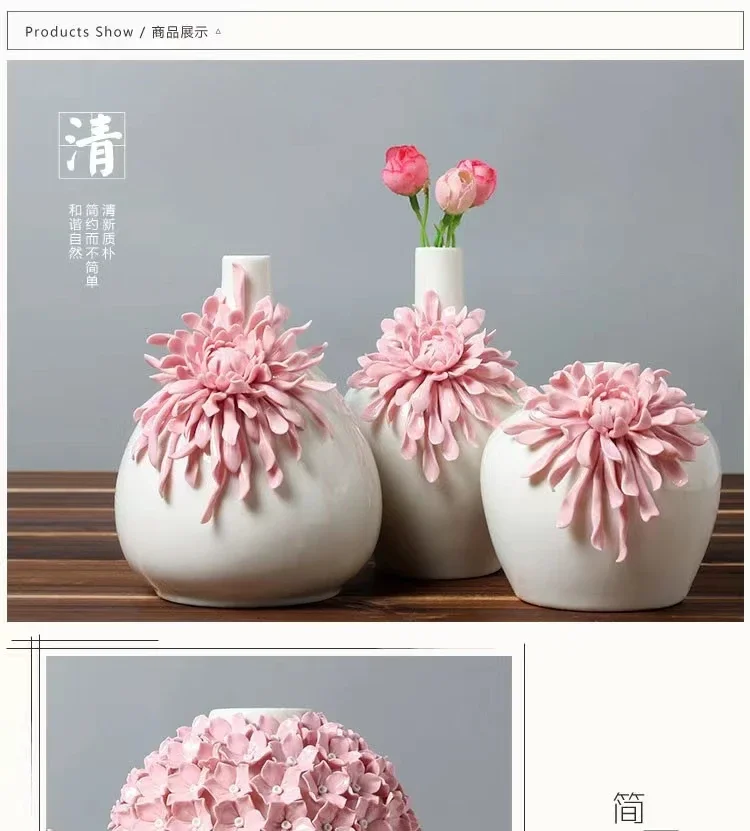 Ceramics Flower Vase Handmade Craftsmanship  High Quality Desk Jarrones Vase Pink Decoration Home Girl  Aesthetic Room Decor
