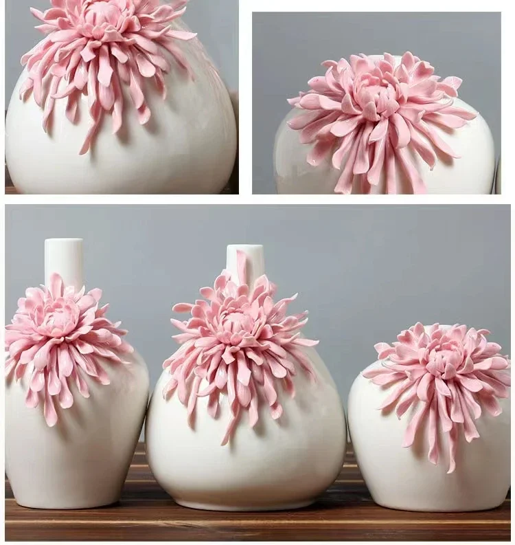 Ceramics Flower Vase Handmade Craftsmanship High Quality Desk Jarrones Vase Pink Decoration Home Girl Aesthetic Room Decor