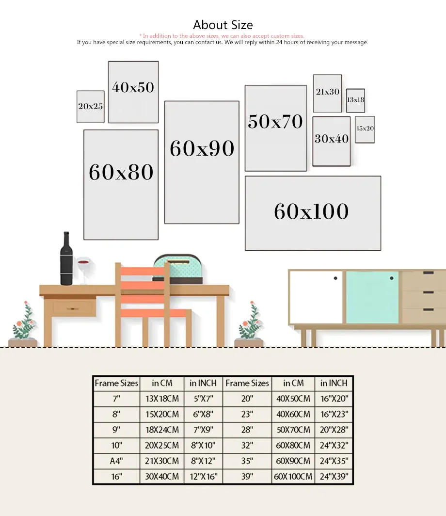4.Customize size is available, please contact us before you order.