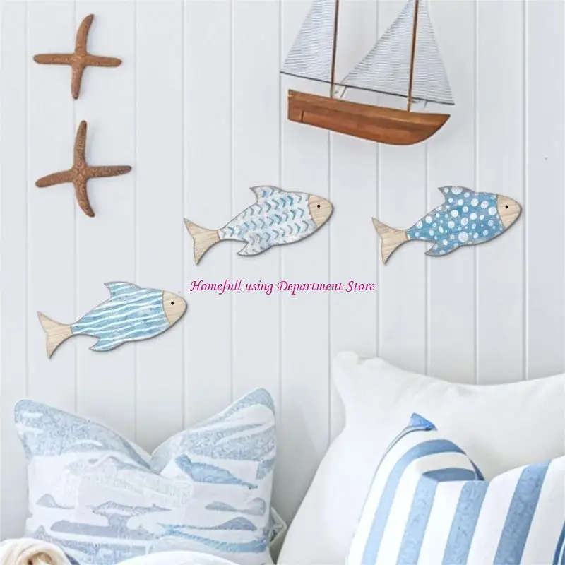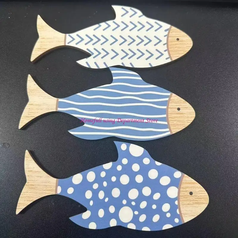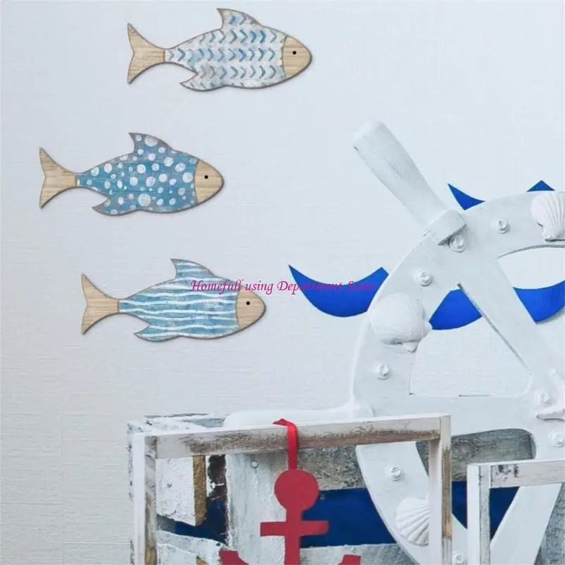 Coastal Wooden Fish Wall Decors Set of 3 For Coastal Interior Hanging Ornaments