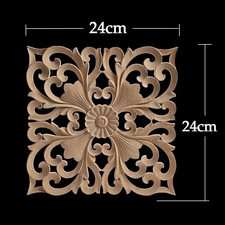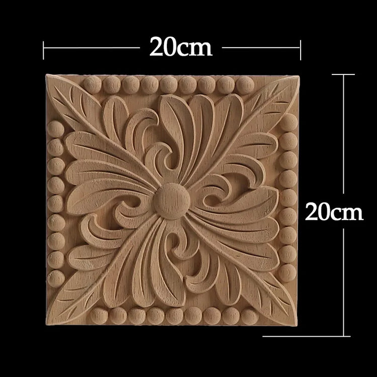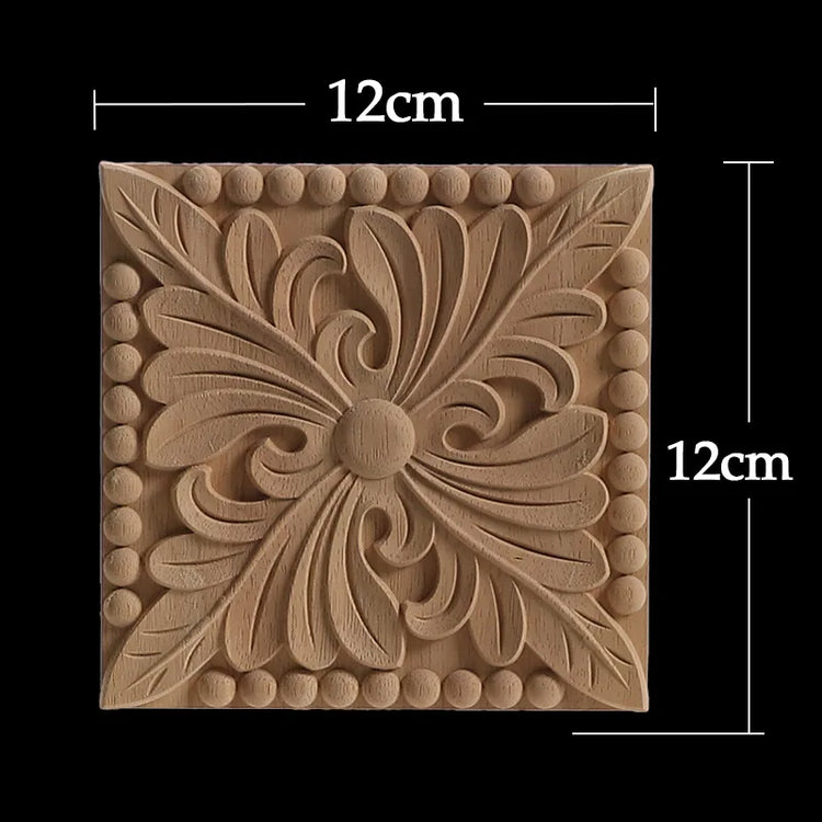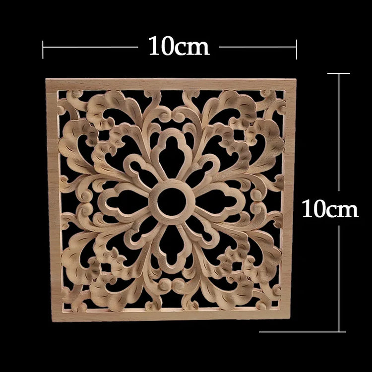 Decorative Wood Appliques Unique Exquisite Natural Floral Wooden Carved Onlay Decal Figurines Home Furniture Door Decor Square