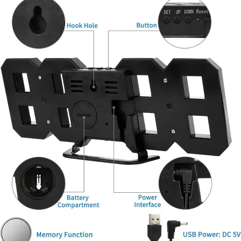 Electronic Digital Wall Clock Living Room Bedroom Decoration Decor Watches Home and Decoration Led Modern Alarm Interior Desk