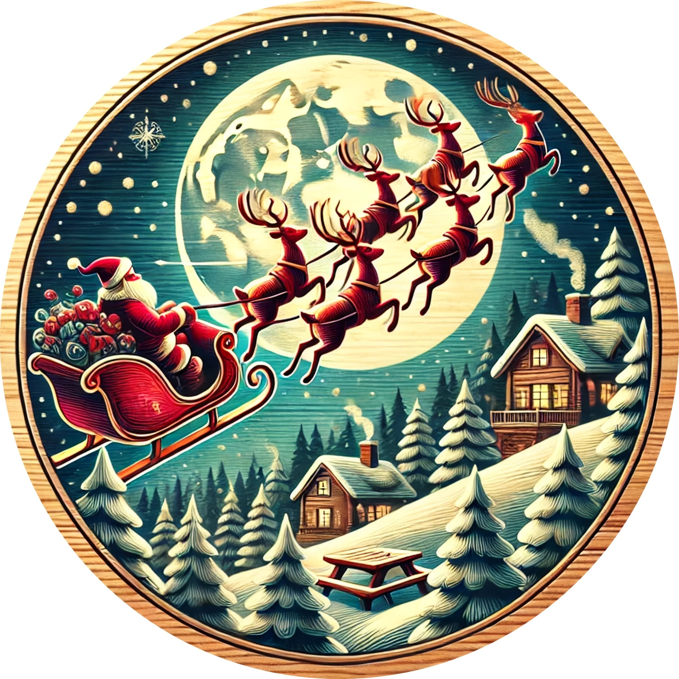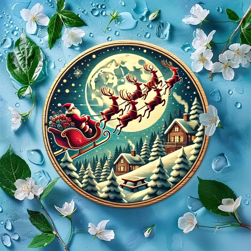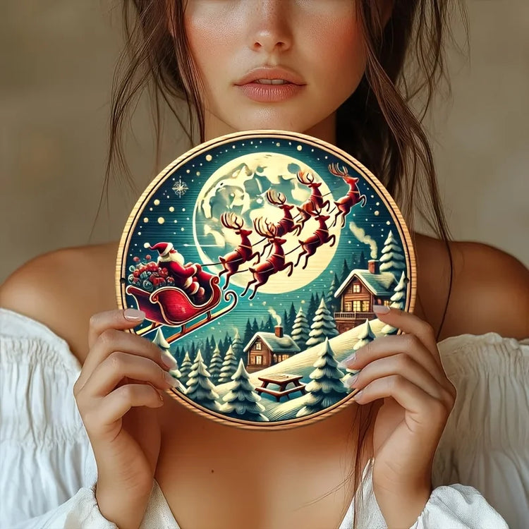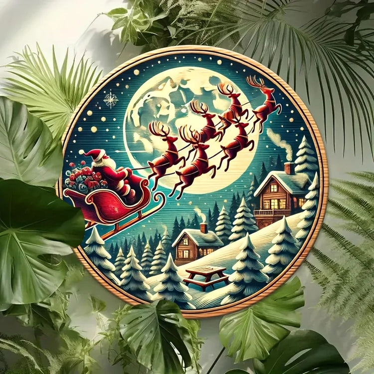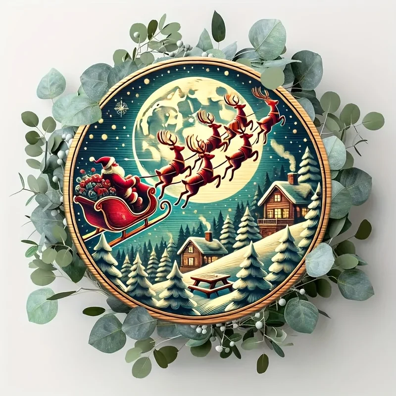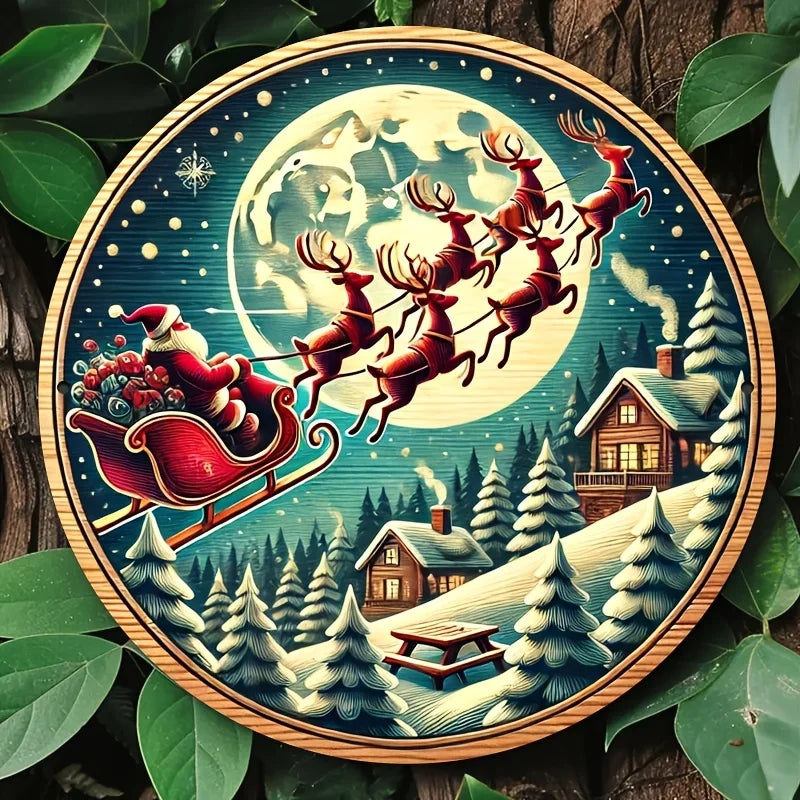 Farmhouse wooden Christmas signs, decorative murals, Santa Claus and carriages, and hanging signs in farmhouse style