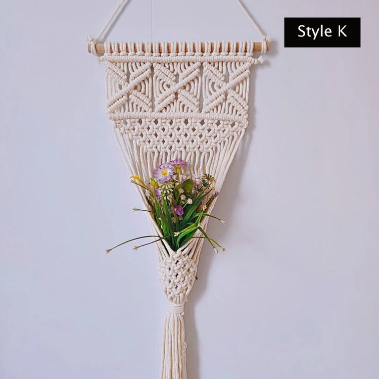 Hand-woven Boho Wall Decor Wall Hanging Tapestry with Woven Pocket Living Room Bedroom Bohemian Craft Decoration Handmade Gifts