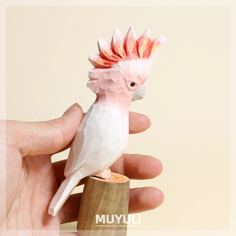 Handmade Carved Wood Parrot Decorative Ornaments Cute Wooden Decor On Desk Decorative Birds Ornaments Home Decoration Figurine