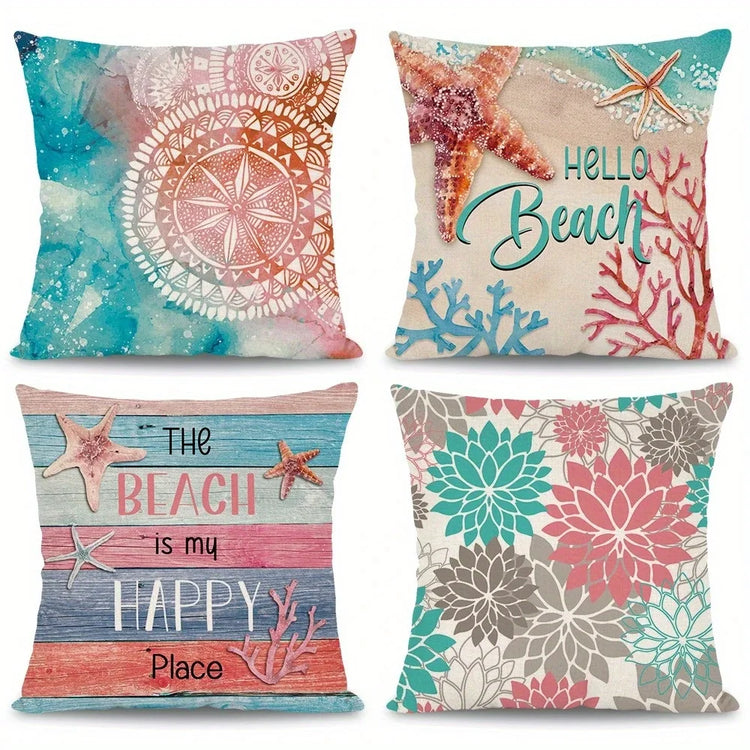 Home Decor Hello Beach Starfish Floral Throw Pillow Covers Pattern Cushion Cover Suitable For Sofa Bedroom Car Pillow Cover