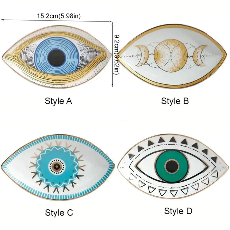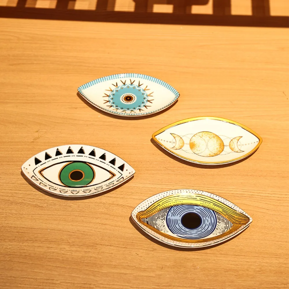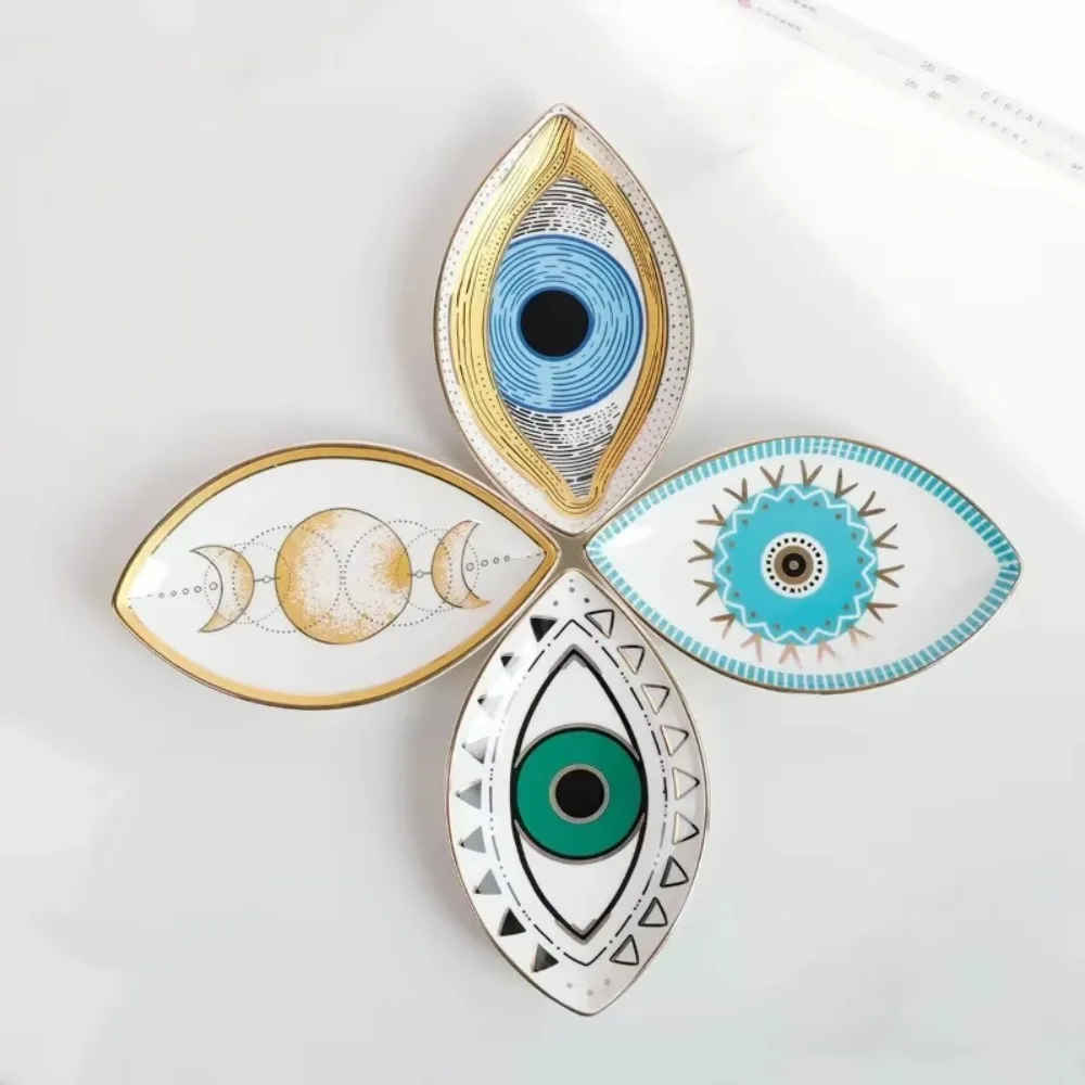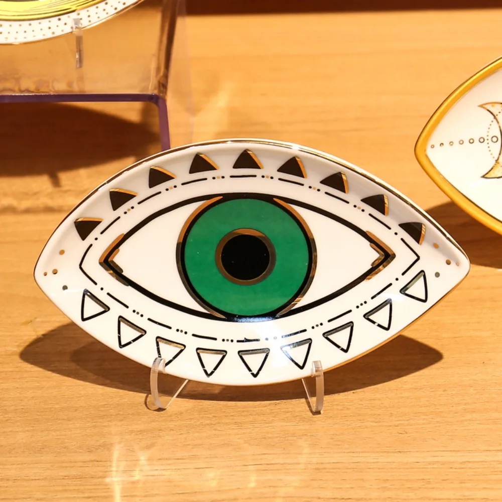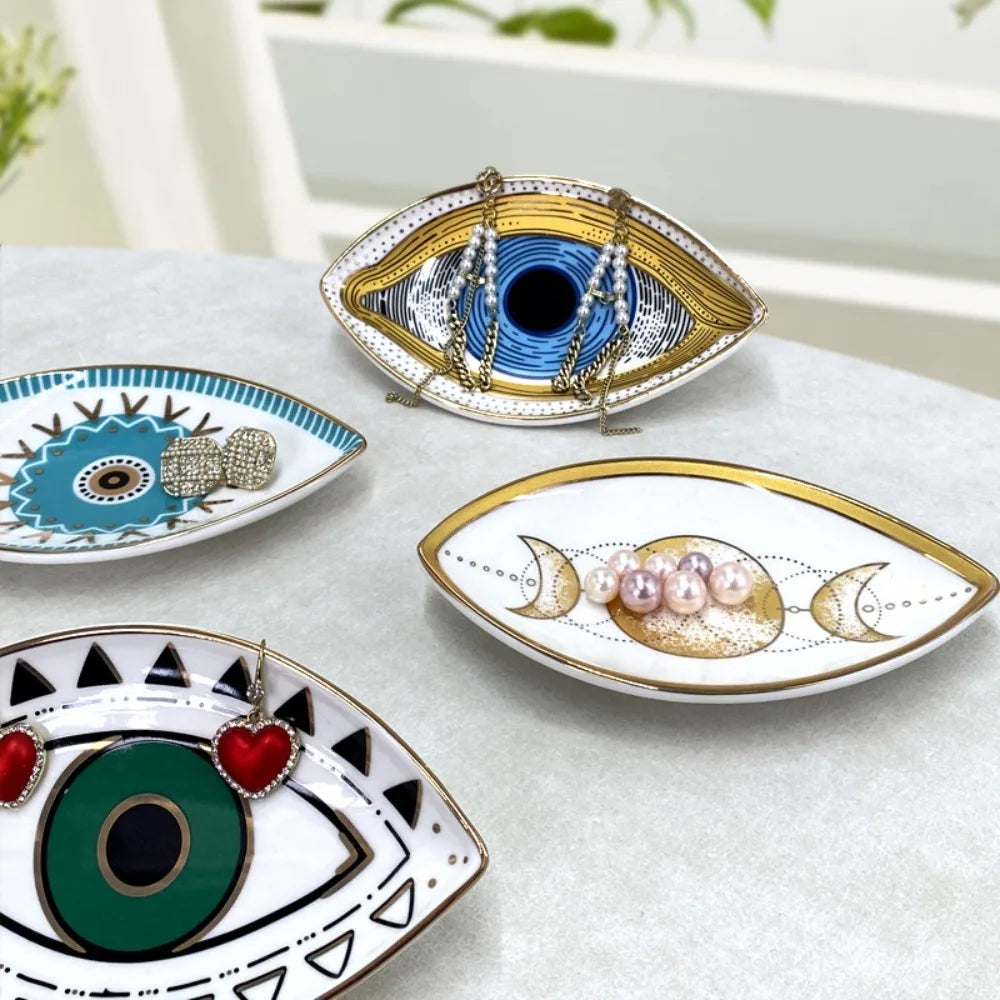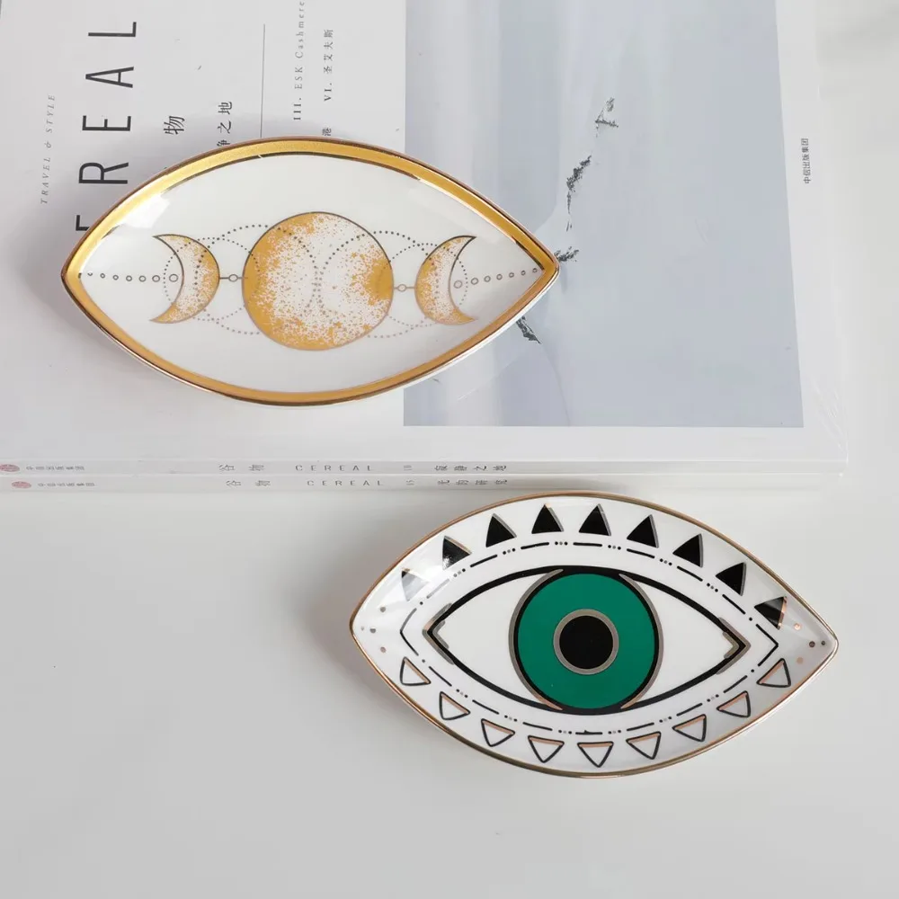 Home Decoration Eye Shape Jewelry Tray Ceramic Oval Decorative Plate Modern Art Style Trinket Plate Key