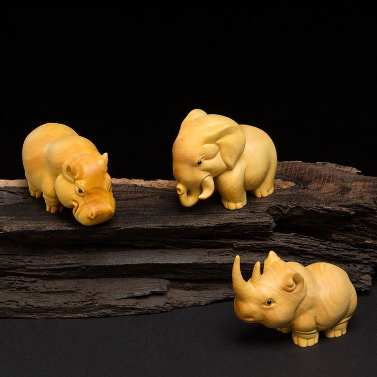 Home Decorations Room Decor Sculptures Figurines Thuja Wood Elephant Rhino Hippo Kawaii Desk Car Accessories Miniature Statues
