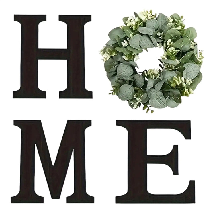 Home Letter Wall Sign Wooden Wall Home Sign Rustic Decor with Artificial Eucalyptus Wreath home decor signs for Kitchen Living