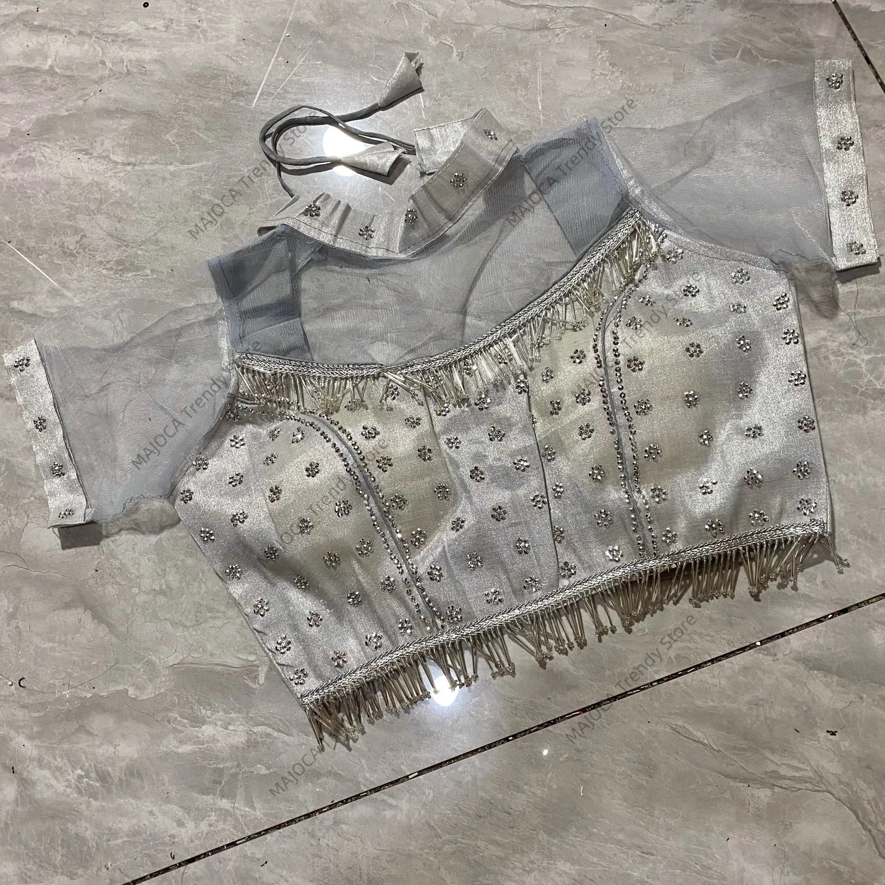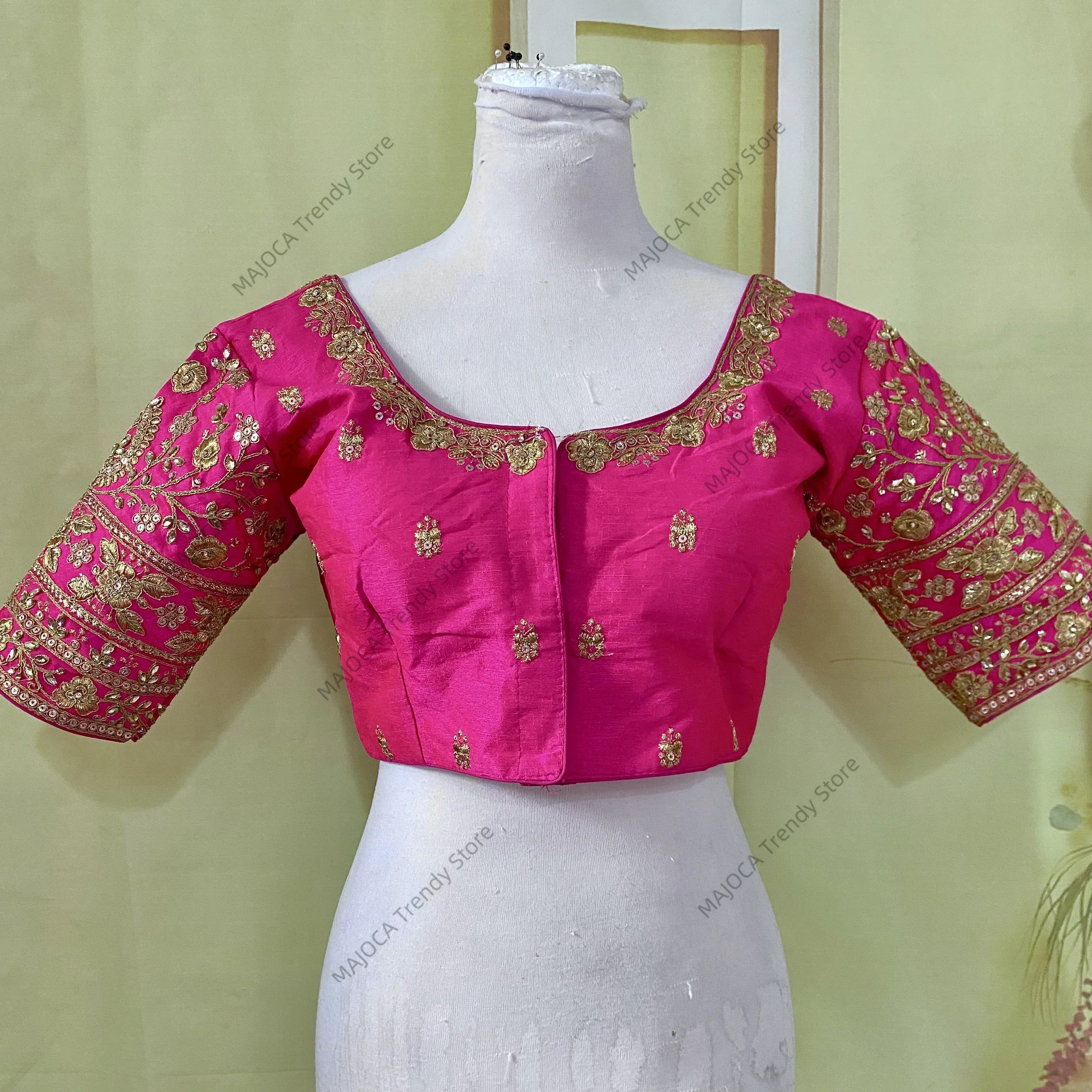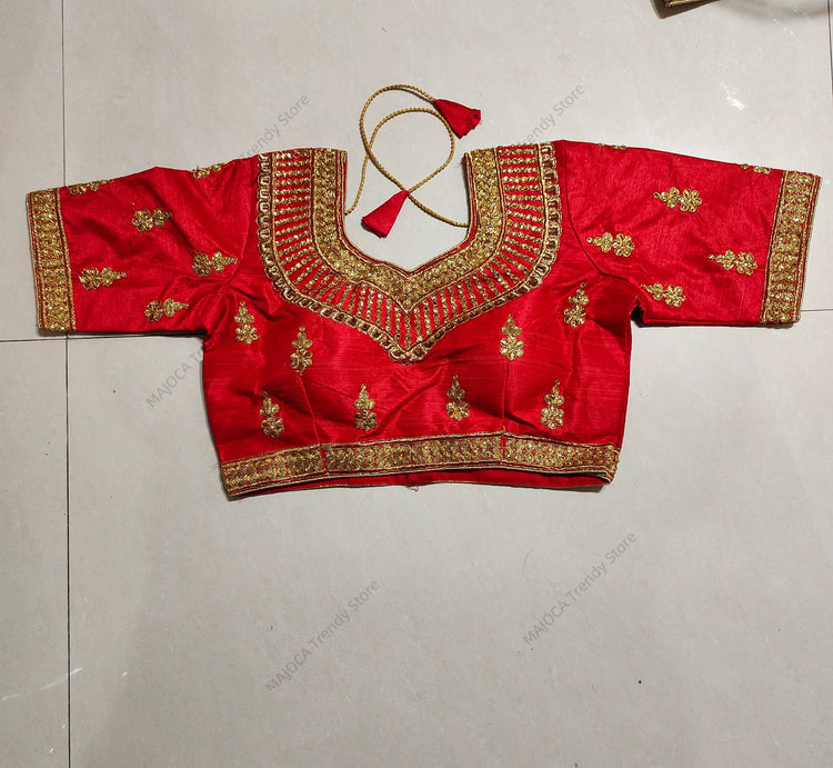 Indian Traditional Clothing for Women Tops Readymade Saree Sari Blouses Short Sleeve Crop Top India Choli Black Red