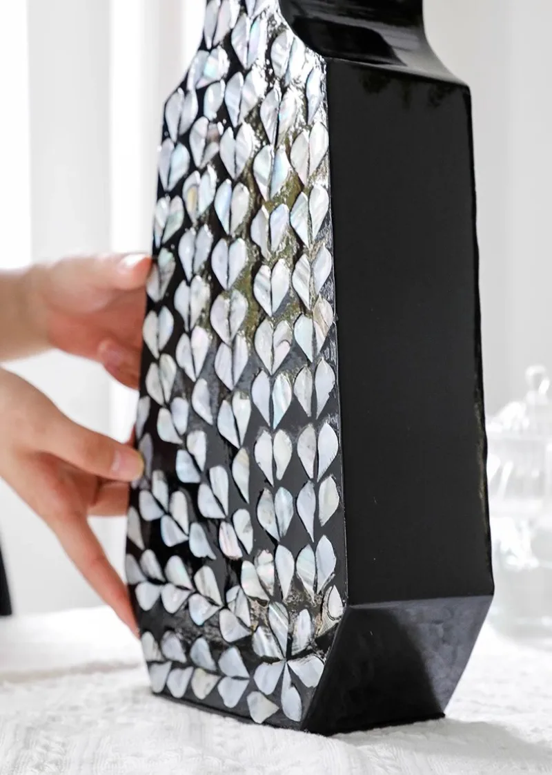 The surface of the product is waterproof with environmentally friendly varnish, so you can wipe it with a damp rag, but do not soak and rinse it, because it is wooden. The patterns are all hand-painted, spliced with natural shell pieces, and imported handicrafts are very textured.