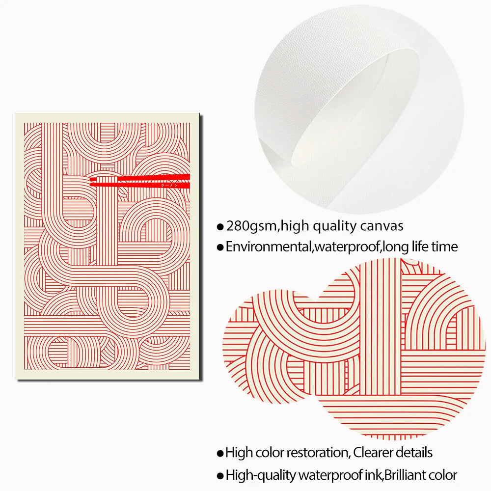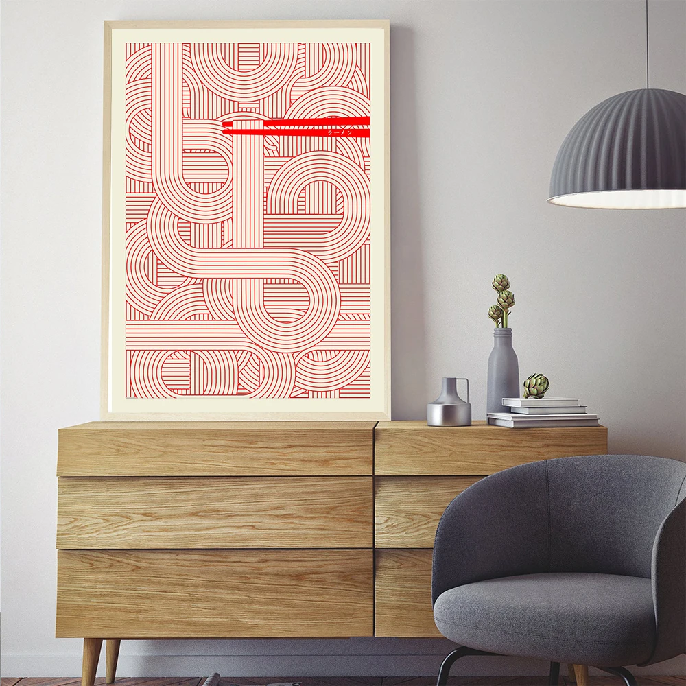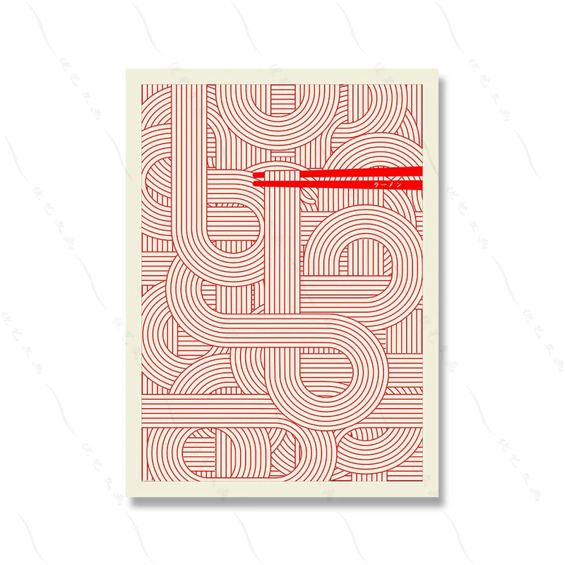 Maximalist Ramen Red Poster Print Murals Abstract Line Wall Art Canvas Painting Posters Kitchen Living Room Home Decoration