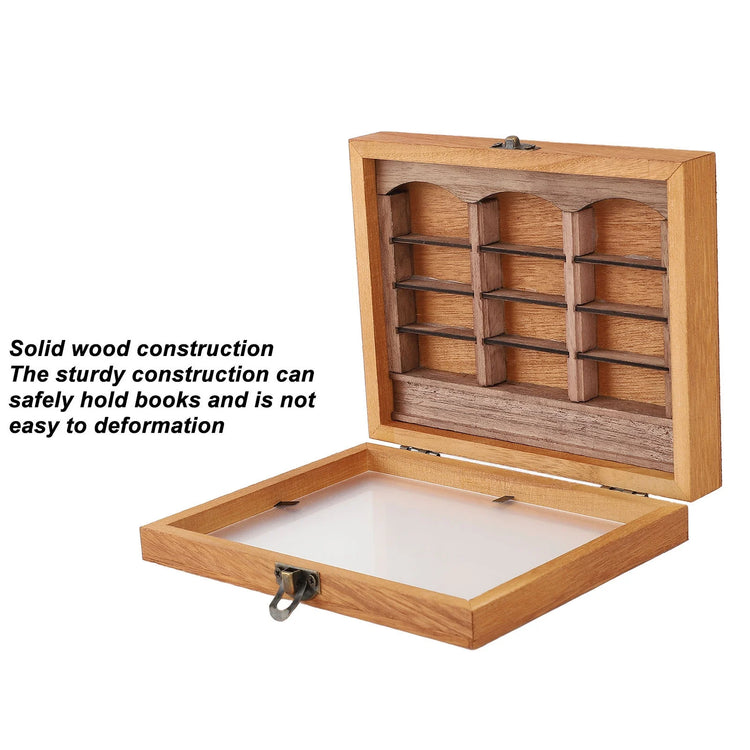 1. ANXIETY RELIEVING: If you're feeling stressed or anxious, our miniature book boxes case can serve as an outlet. Give your books a shake or rearrange them, promoting relaxation and mindfulness.2. SOLID WOOD CONSTRUCTION: Crafted from solid wood, this bookshelf is sturdy and durable. It can securely hold books and more. The natural wood grain enhances its aesthetic appeal.