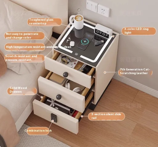 Minimalist Storage Nightstand Aesthetic Lamp Smart White Nightstand Drawer Cabinet Mesita De Noche Dormitorio Home Furniture