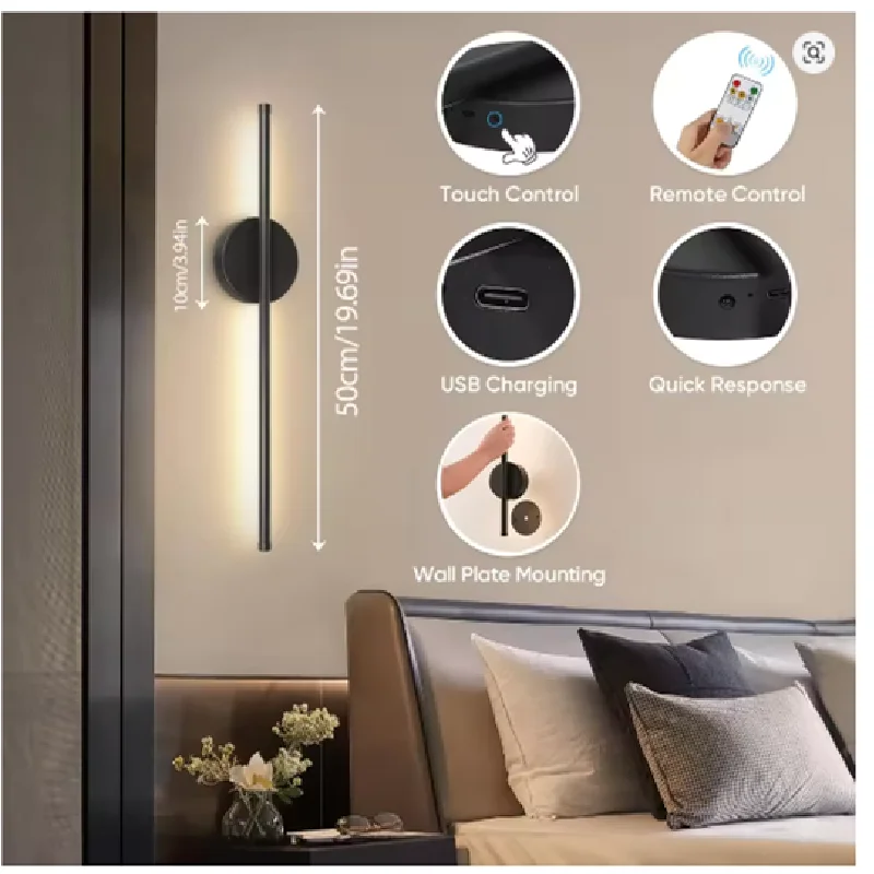LED Rechargeable Wall Light, Installation, Free, Wall Sconce, 1PC, 50CM ,Dimming For Livingroom ,Sofe ,Beside ,Bedroom, Wall Decor Lamp,