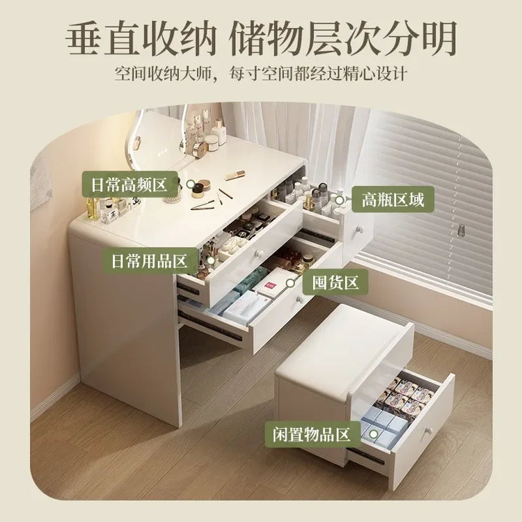 Modern 3 in 1 Makeup with Mirror and Light Makeup Vanity with Storage Makeup Table with 2 Drawers and Upholstered Stool Cabient