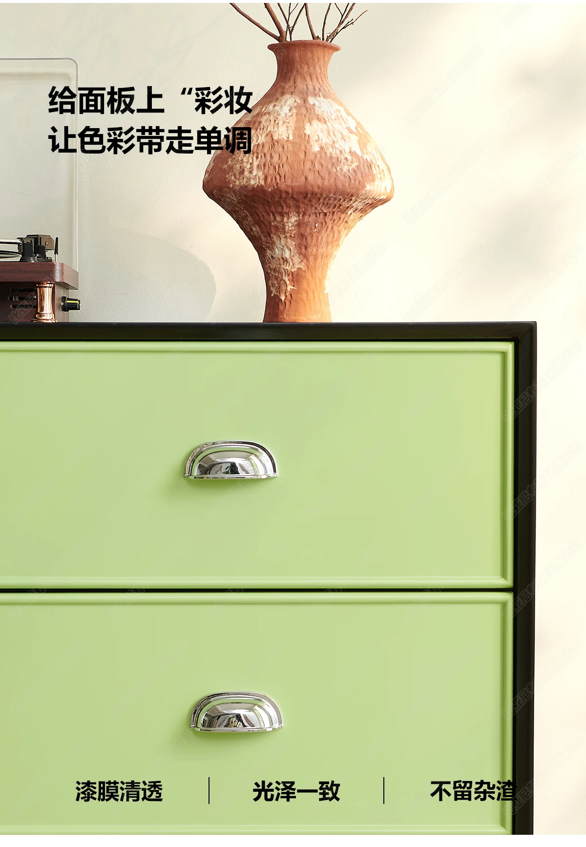 Pair large text with a full-width image to draw attention to an important detail of your brand or product line.
