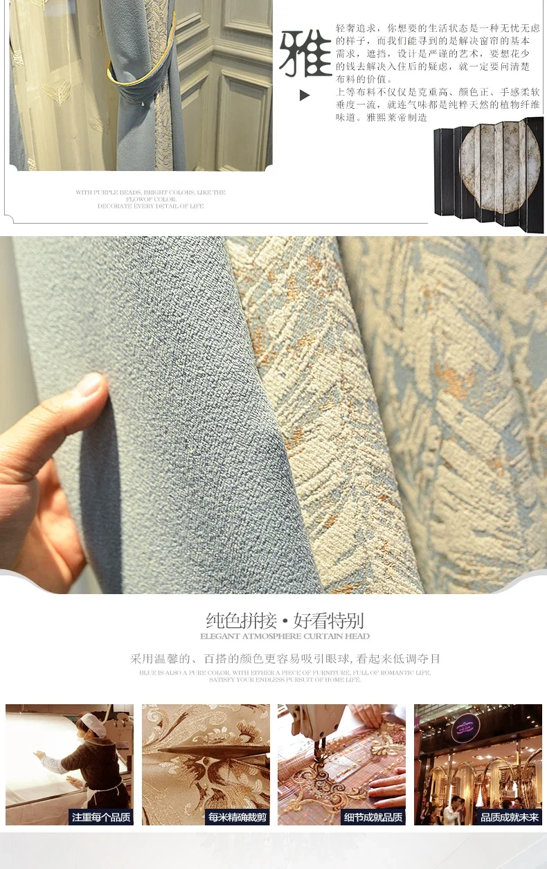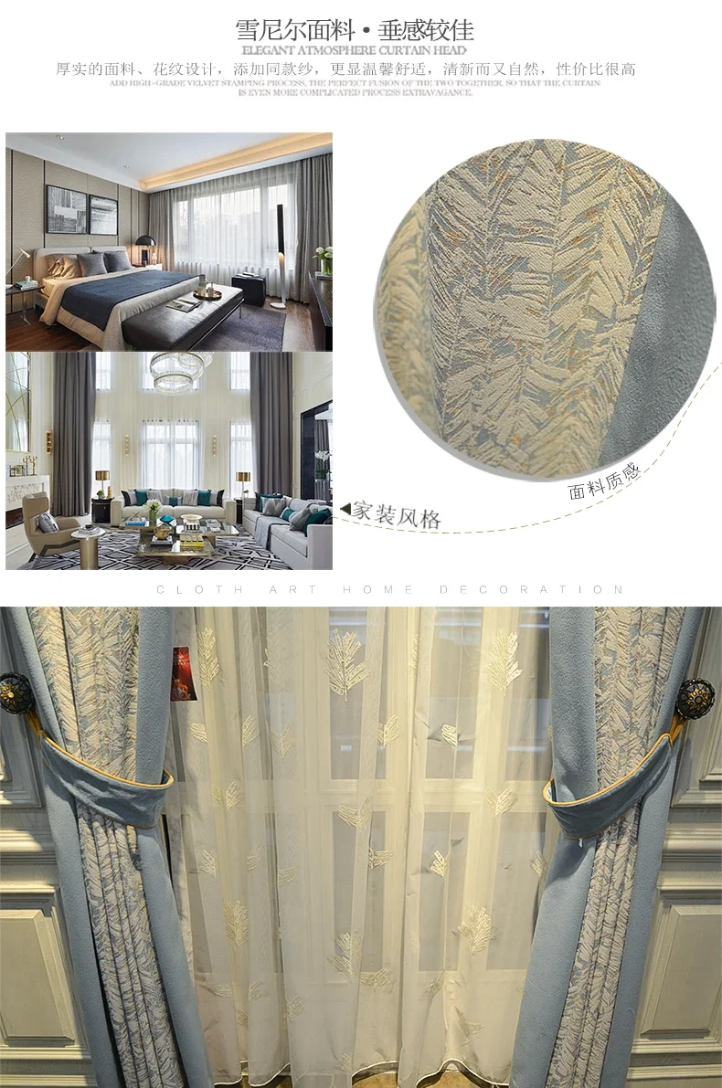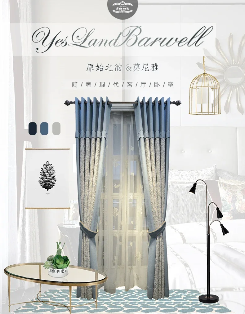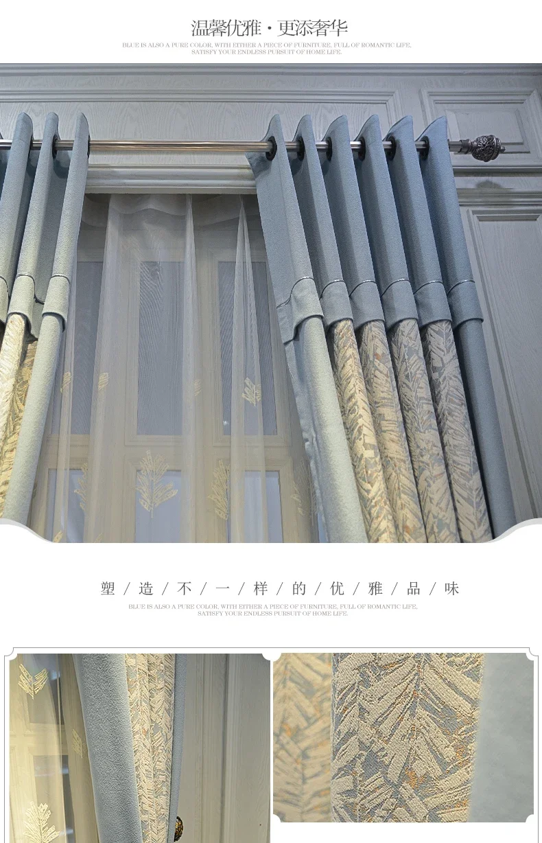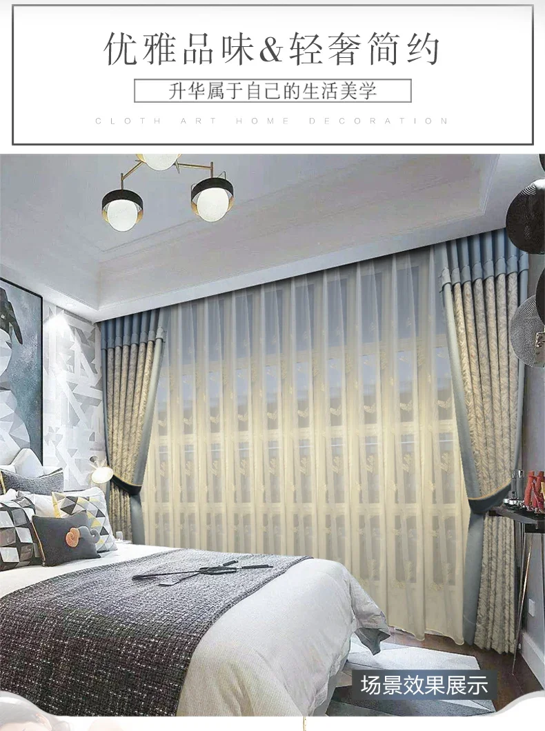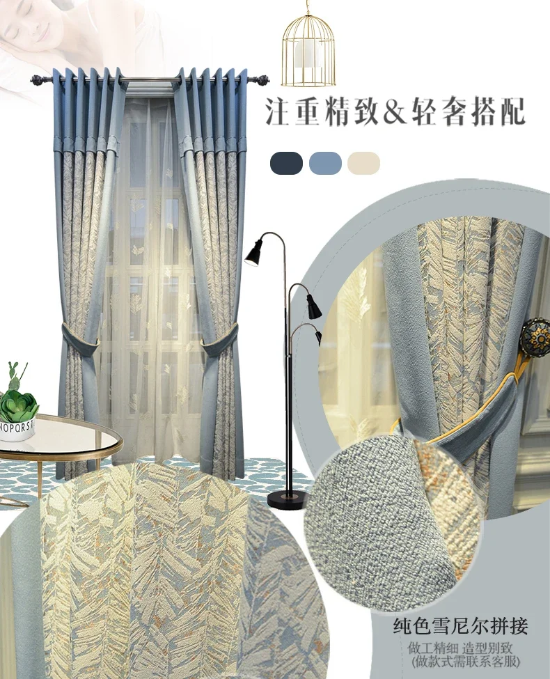 Modern Curtains for Living Room Bedroom Dining Luxury American Nordic Blackout Shading Color Matching Curtains Customize