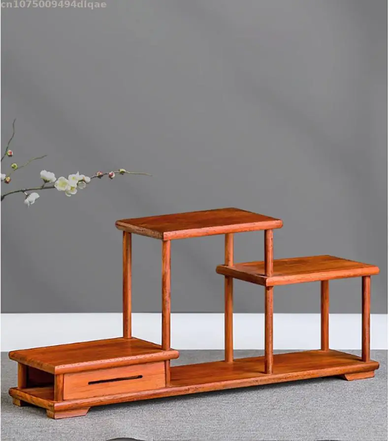 Natural Solid Wood Decorative Shelves Wine Tea Sets Pedestal Crafts Vase Flower Pot Bonsai Buddha Display Stand Storage Rack