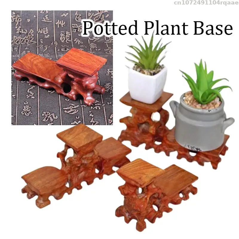 Natural Solid Wood Miniature Bases Figurine Vase Flower Pot Holder Coffee Tea Sets Pedestal Bonsai Plant Rack Home Decoration