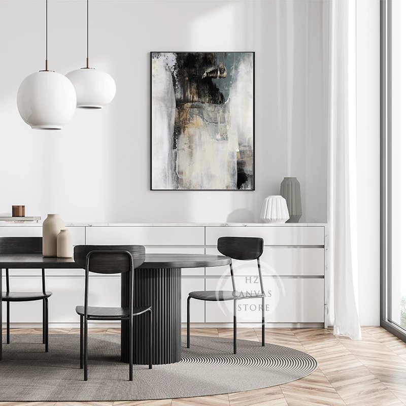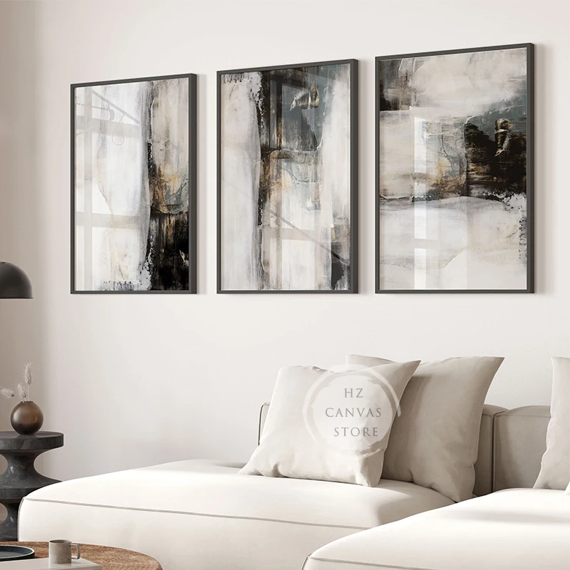 Neutral Abstract Wall Art Poster Gold Black Grey Prints Modern Canvas Painting Wall Picture for Living Room Home Decoration Gift