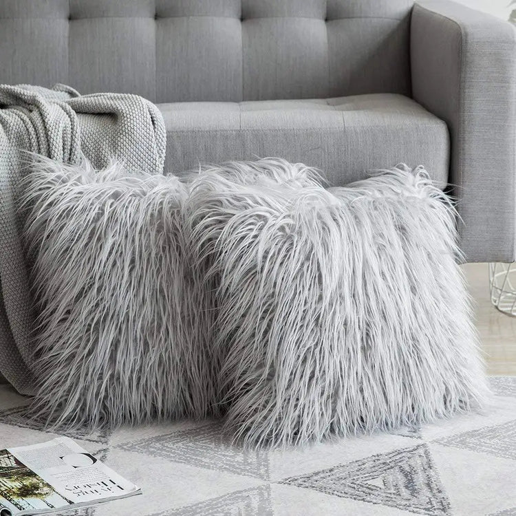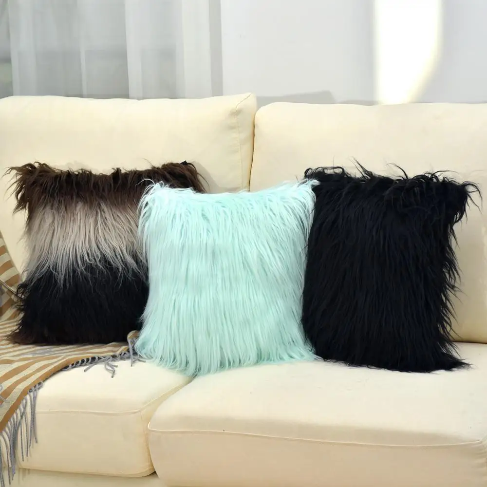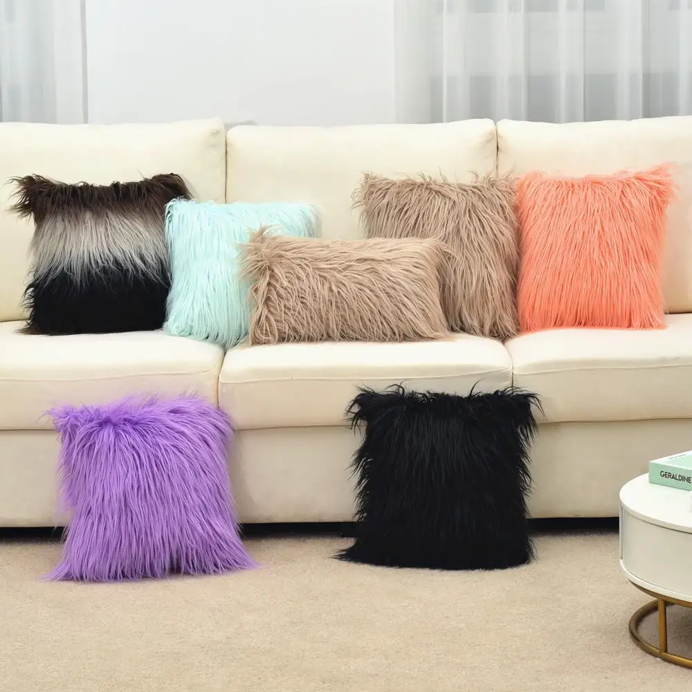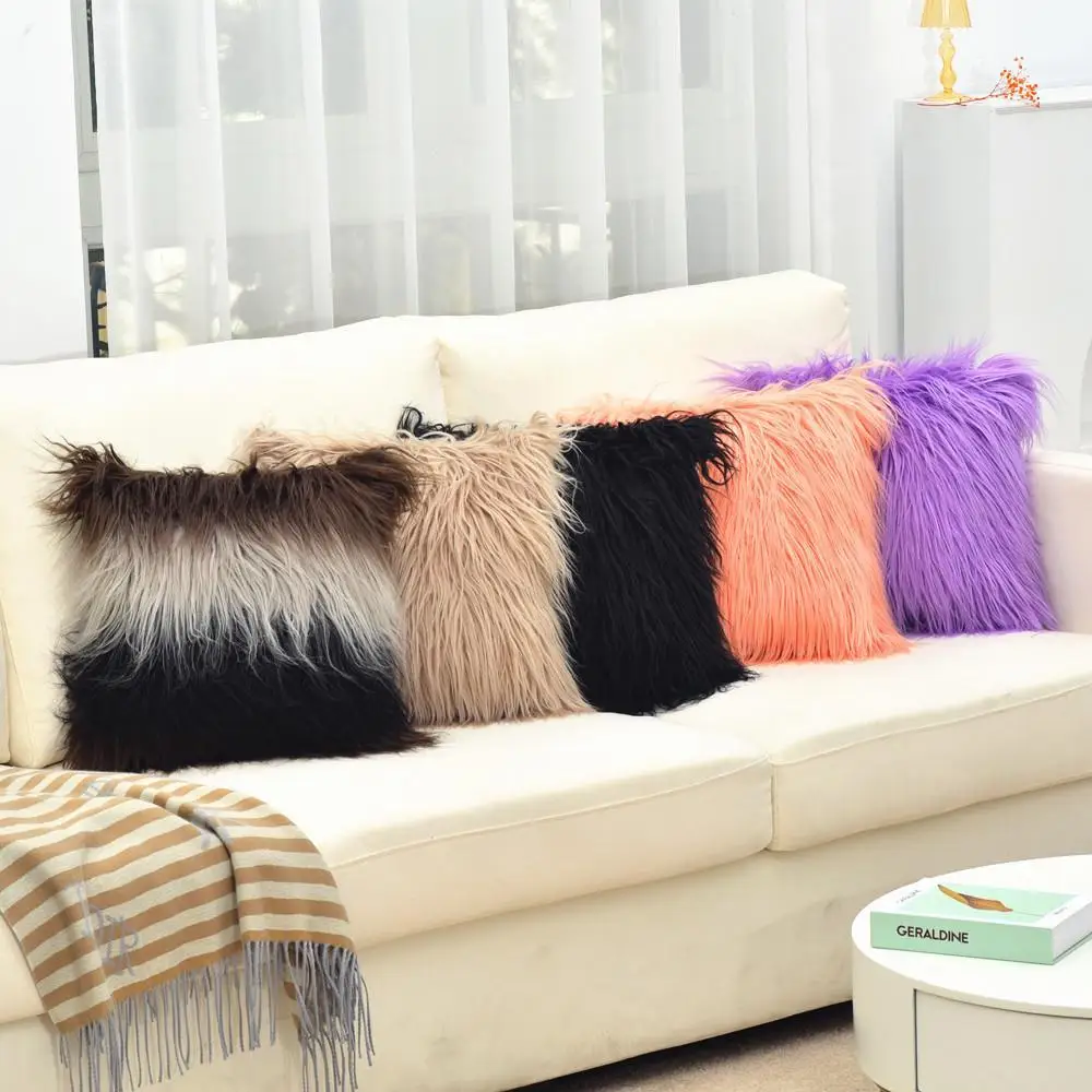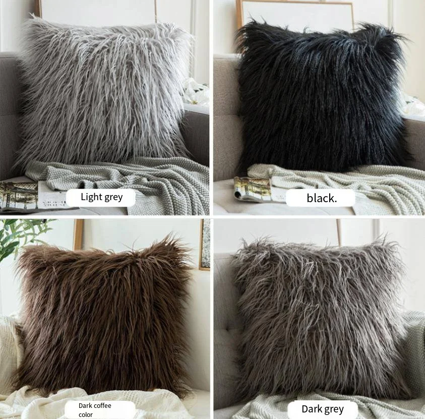 Plush pillow case imitation beach wool square solid color cushion gray white pillow household sofa pillow