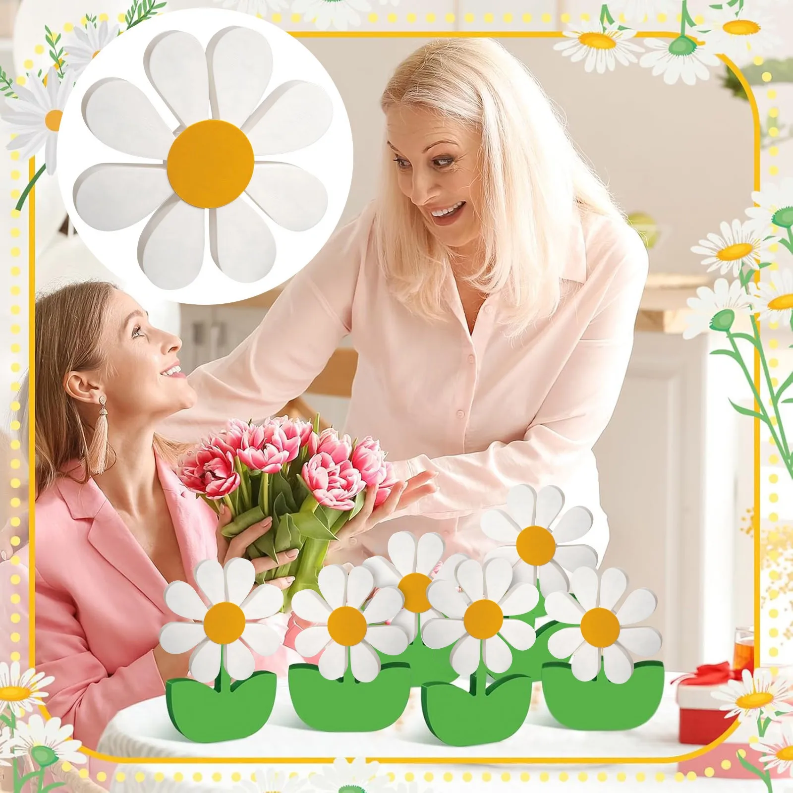 Pretty 3D Wooden Craftwork Yellow and White Daisy Wooden Ornament Creative Desktop Decoration Ornament Home Decorative Crafts
