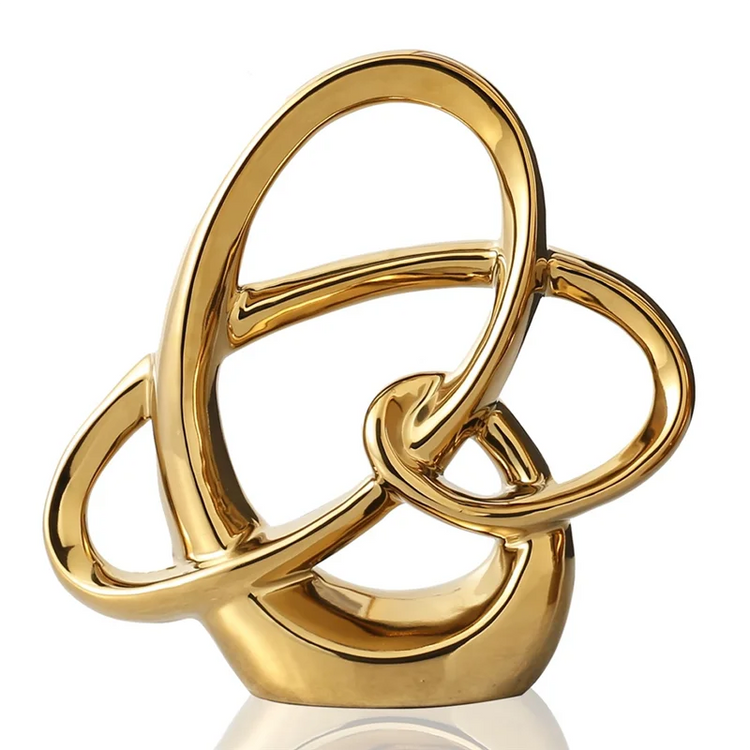 Enhance Your Space: Elevate your home or office with our modern, geometric statue. Crafted to add sophistication, its reflective surface creates a captivating light display, bringing beauty to any room. Ideal for chic decor, it's a Gold Geometric Knot that draws the eye.