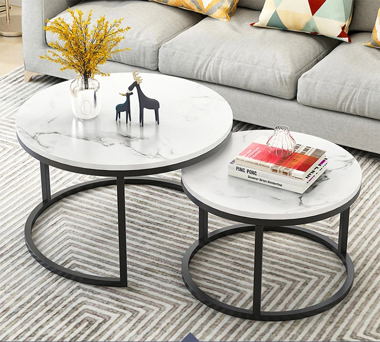 Wood Top with Marble texture 2 in 1 Coffee Tables Living Room Sofa Beside Round Coffee Tea Table Desk Combination Home Furniture