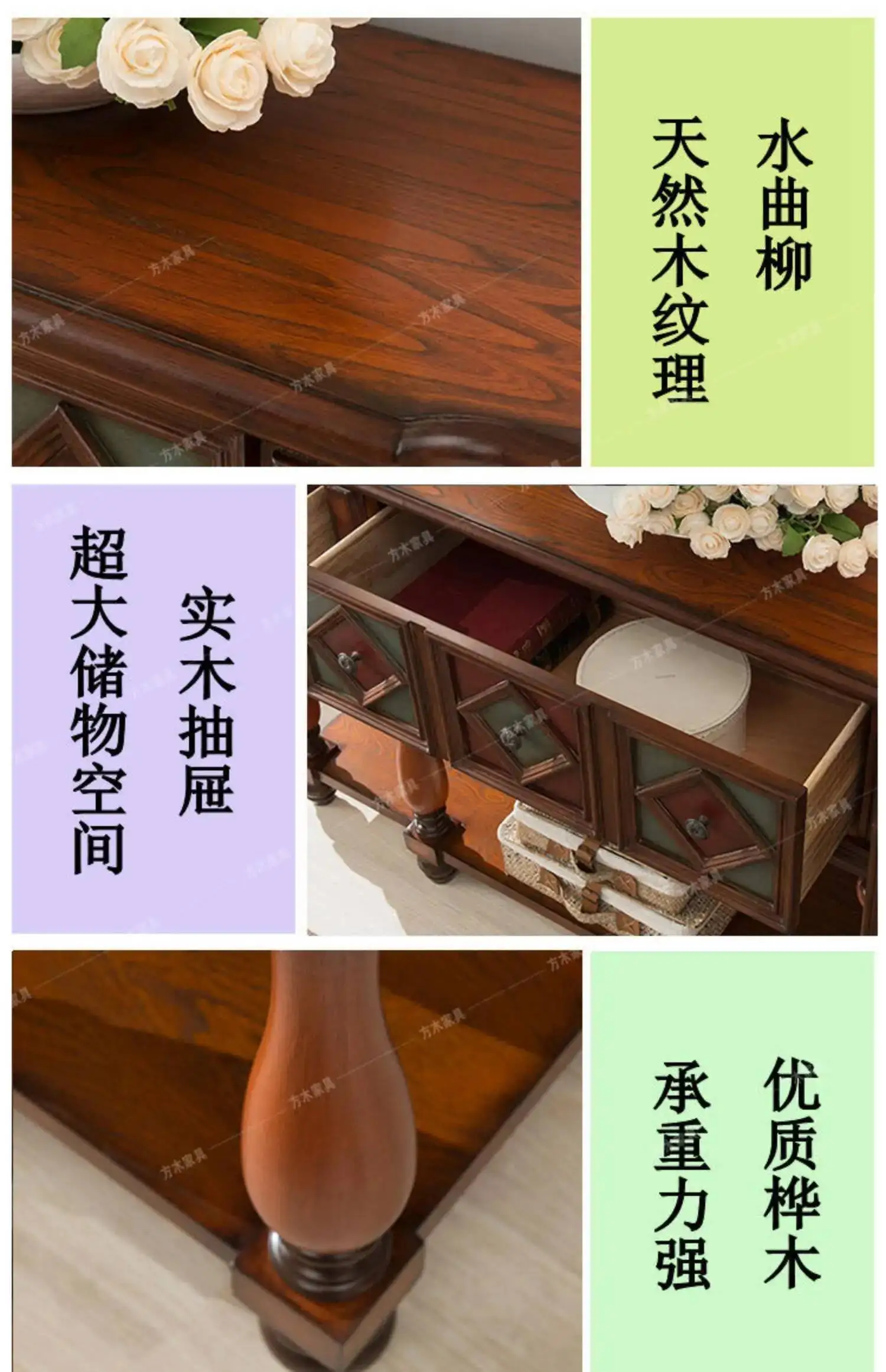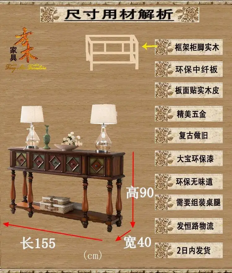 Vintage Luxury Console Tables Mid Century American Retro Premium Console Tables Beauty Metal Handle Bureau Furniture Living Room